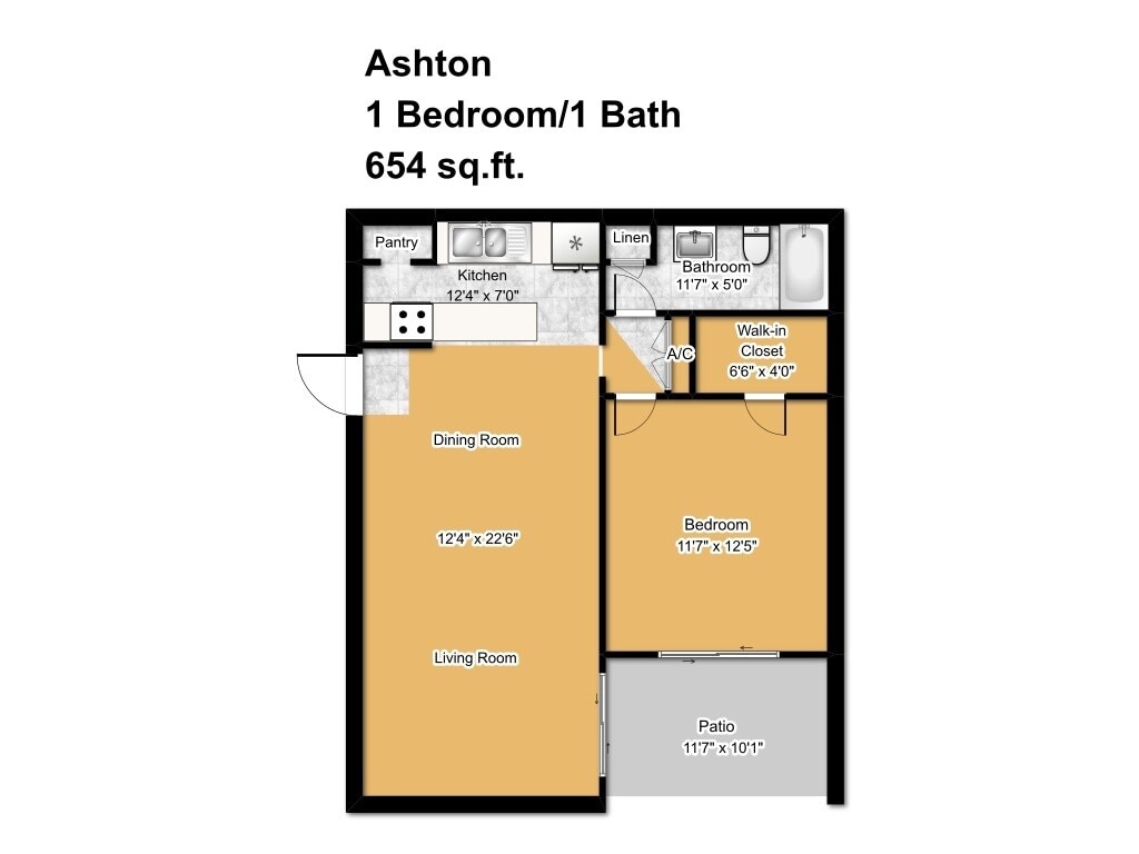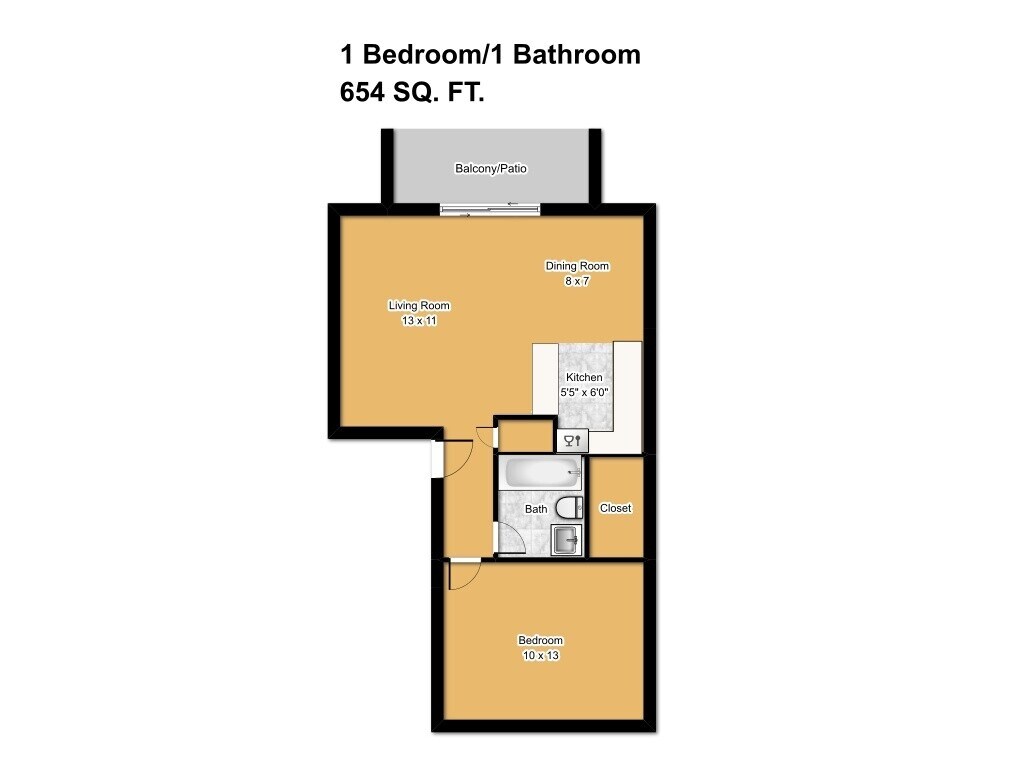 1 Dormitorio, 1 Baño, 654 pies²Disponible AhoraGalería del Modelo