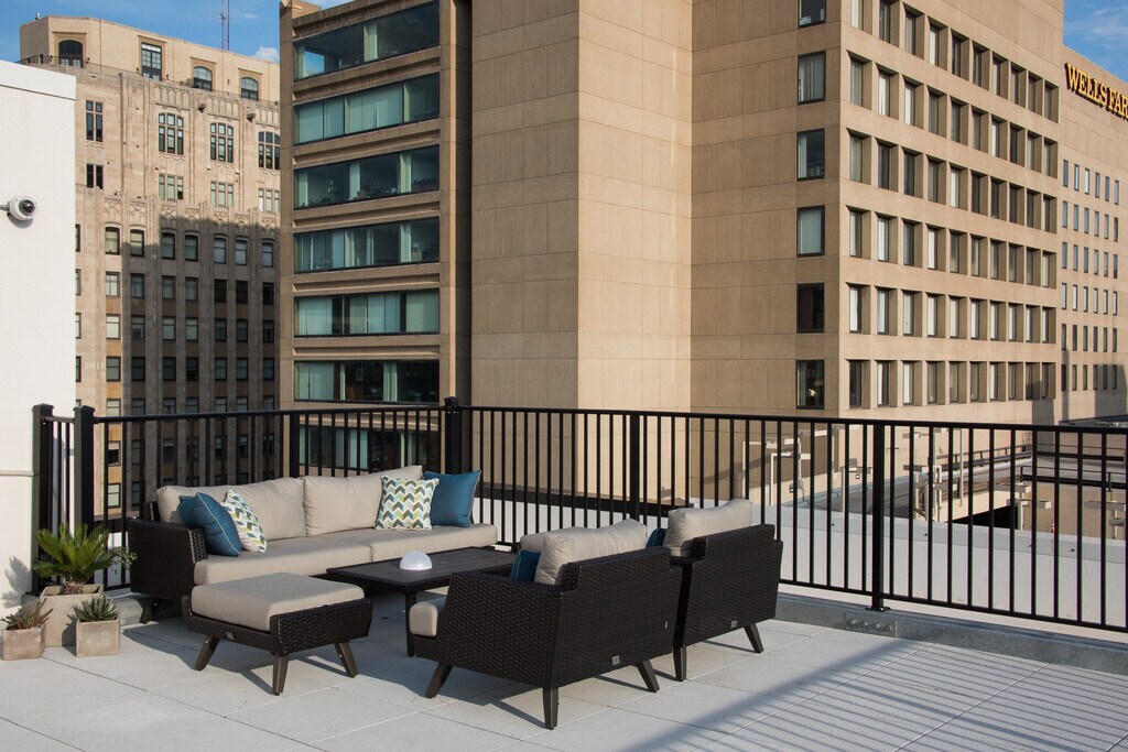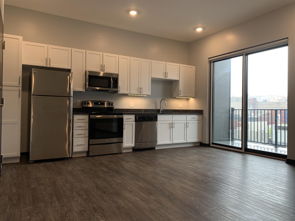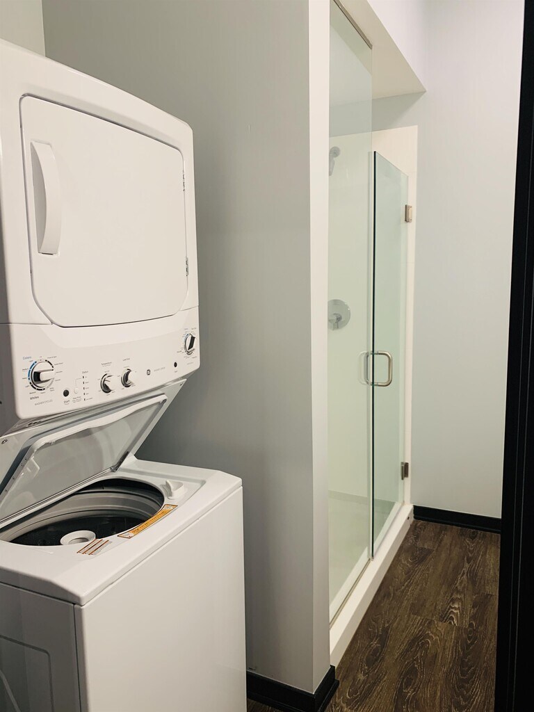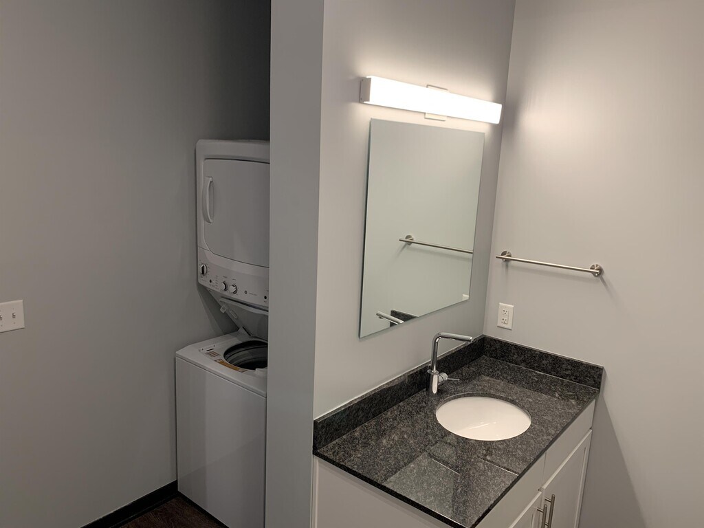 Studio+ unit facing north with lots on natural light, private balcony. Stacked washer & dryer in unit. Access to rooftop patio. Parking at nearby city parking garage available.