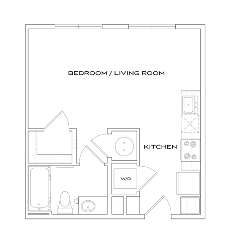 Estudio, 1 Baño, 447 pies²Disponible August 14, 2026Galería del Modelo