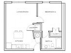1 Dormitorio, 1 Baño, 520 pies²Disponible August 12, 2026Galería del Modelo