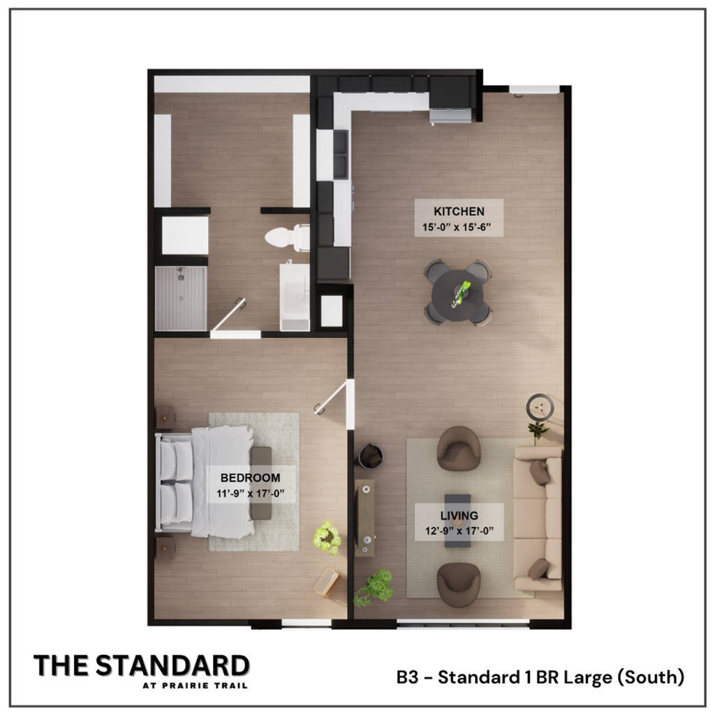 Experience Ankeny living at its finest at The Standard at Prairie Trail. Our brand-new apartments boast bright interiors with stainless steel appliances, granite countertops, and abundant natural light. Conveniently located in the center of the District at Prairie Trail in Ankeny in walking distance of restaurants, coffee shops, entertainment and DMACC campus.