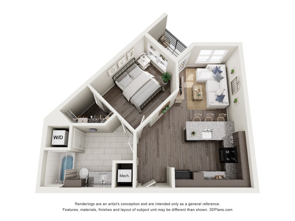1 Dormitorio, 1 Baño, 851 pies²Disponible AhoraGalería del Modelo