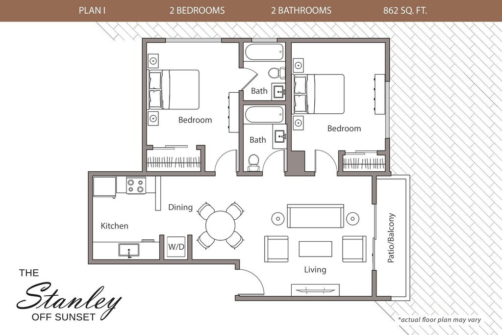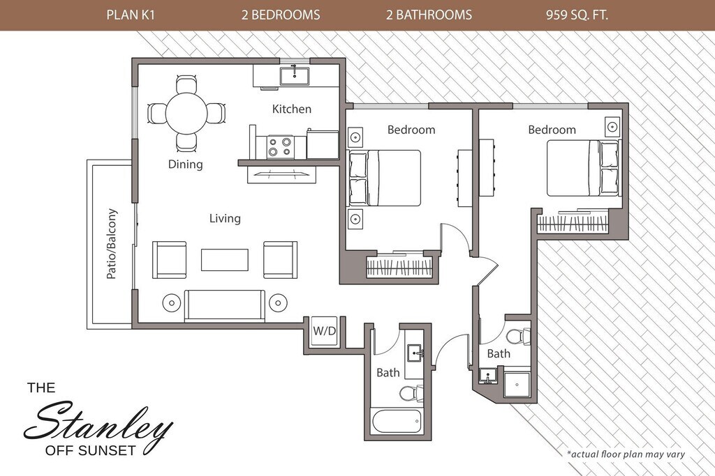 2 Bedrooms, 2 Baths Plan K - Plano 2 ![]()