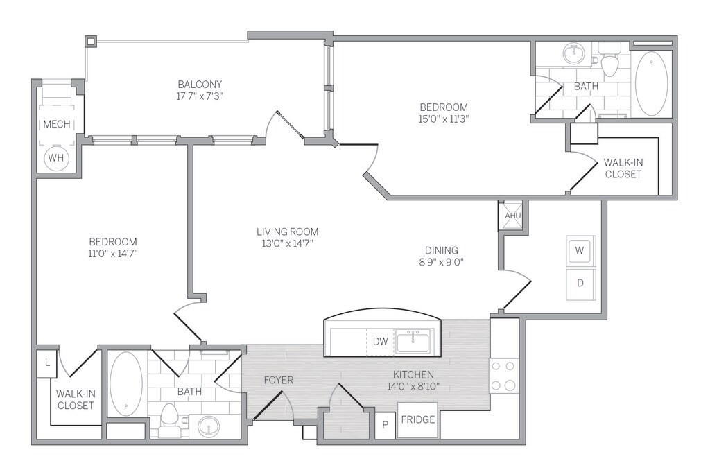 1 Dormitorio, 1 Baño, 975 pies²Disponible AhoraEl más grandeEsta opción tiene las unidades más grandes para este modeloGalería del Modelo