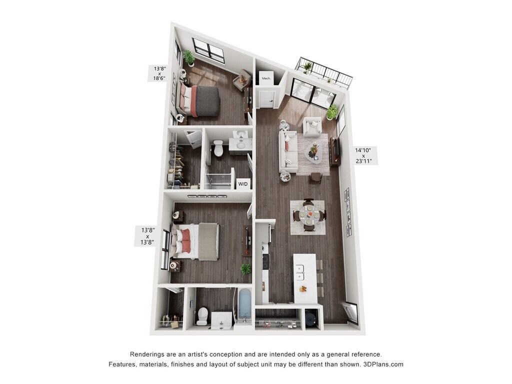 Modelo de apartamento: 2 Bedroom2 Dormitorios, 2 Baños, 1065 sq ftNo Disponible![]()