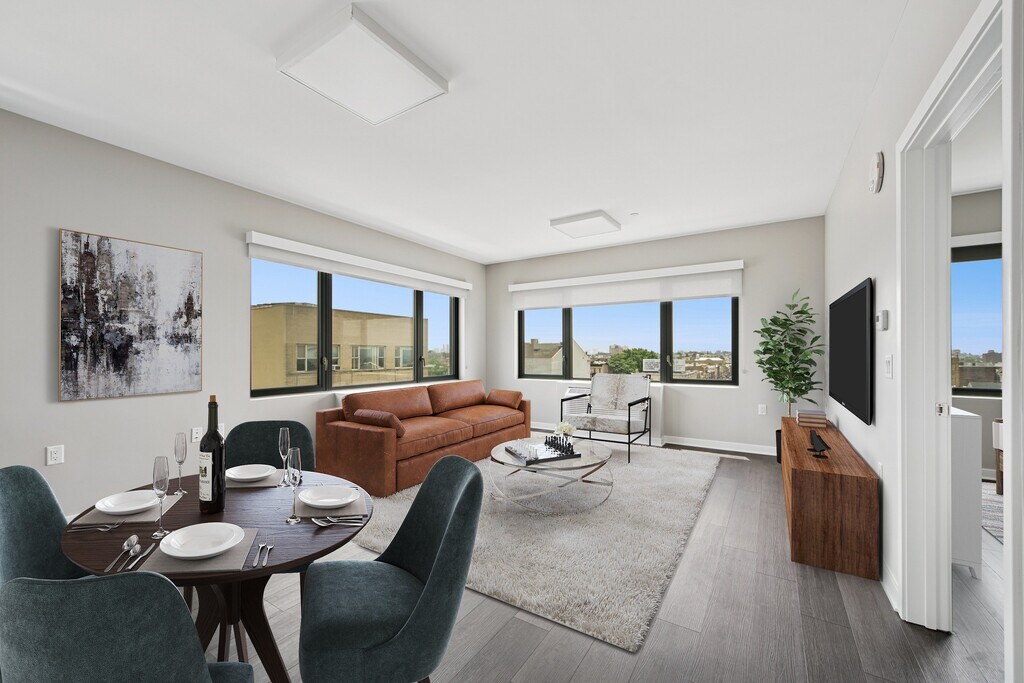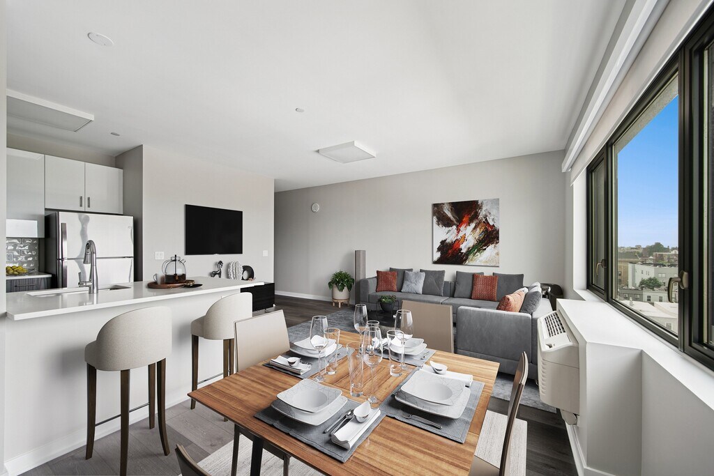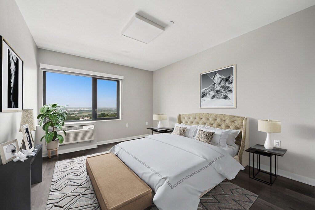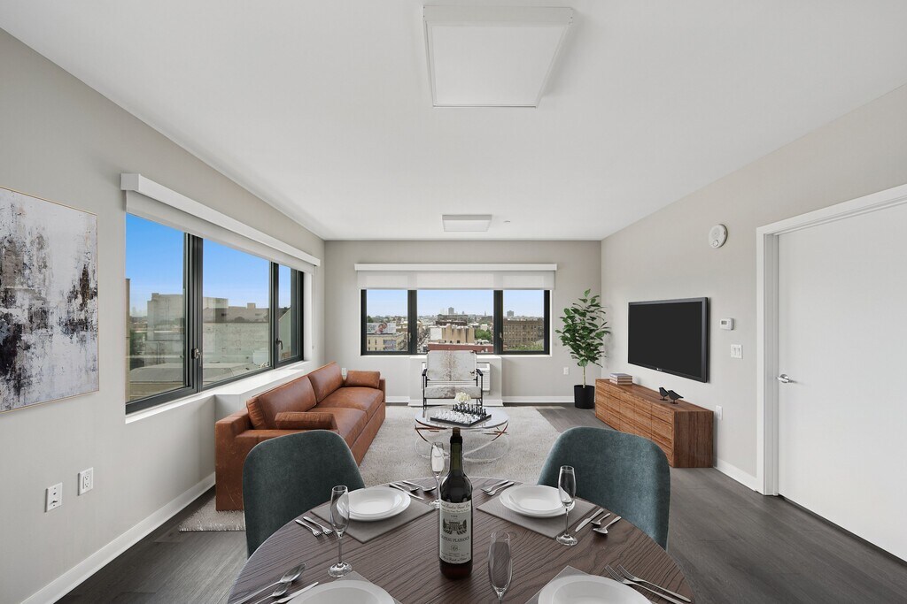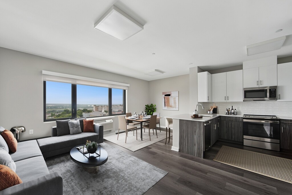The Station Apartments in West New York feature modern one and two-bedroom apartments with easy access to Manhattan. Fully furnished options are available providing a hassle-free move in near shopping and dining. Enjoy stunning city skyline views from the rooftop and the convenience of the Light Rail station just across the street.