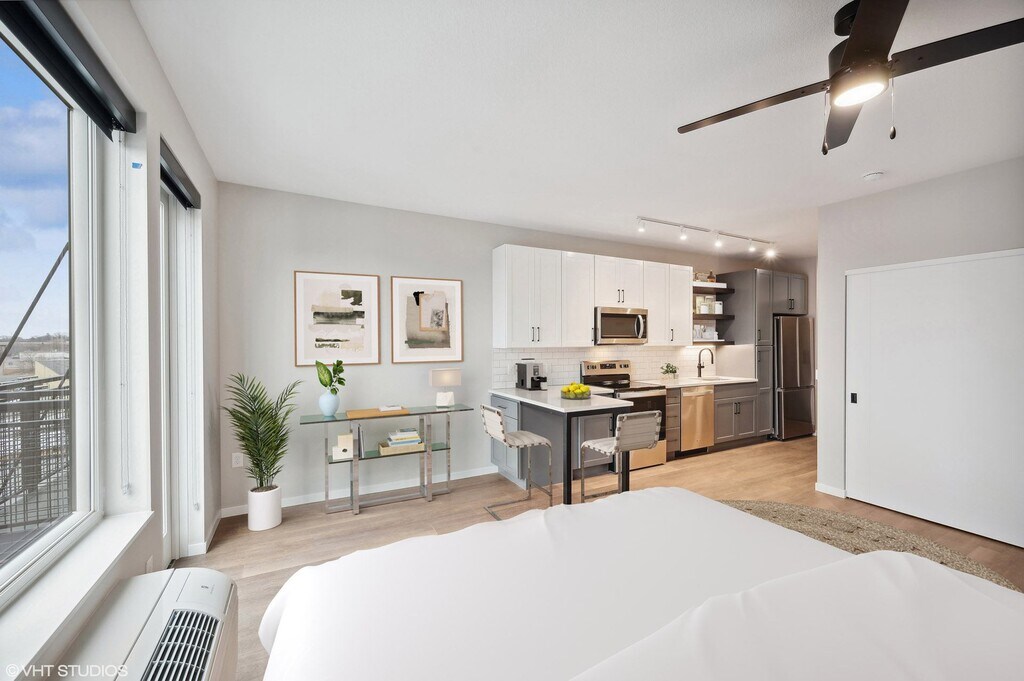 Explora los modernos espacios de estar que admiten mascotas y las comodidades funcionales diseñadas para mejorar tu vida diaria. Las comodidades incluyen un salón al aire libre, gimnasio, estacionamiento subterráneo climatizado, estaciones para trabajar desde casa y más... Ubicado en la parte industrial de la ciudad, The Station está rodeado de creadores y fabricantes conocidos por sus innovaciones en comida y bebidas: The Market, Surly Brewing y O'Shaughnessy Distillery. Vive en una parte moderna, industrial y vibrante de Prospect Park.