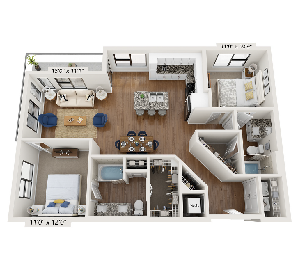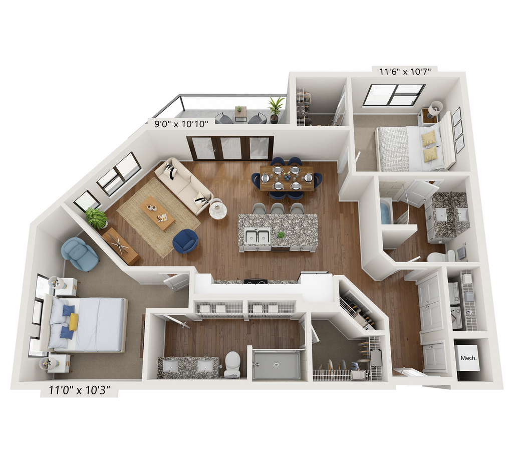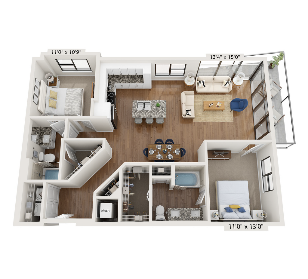 1 Dormitorio, 1 Baño, 797 pies²Disponible AhoraGalería del Modelo