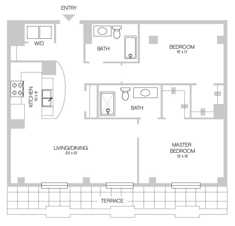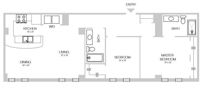 1 Dormitorio, 1 Baño, 879 pies²Disponible AhoraGalería del Modelo