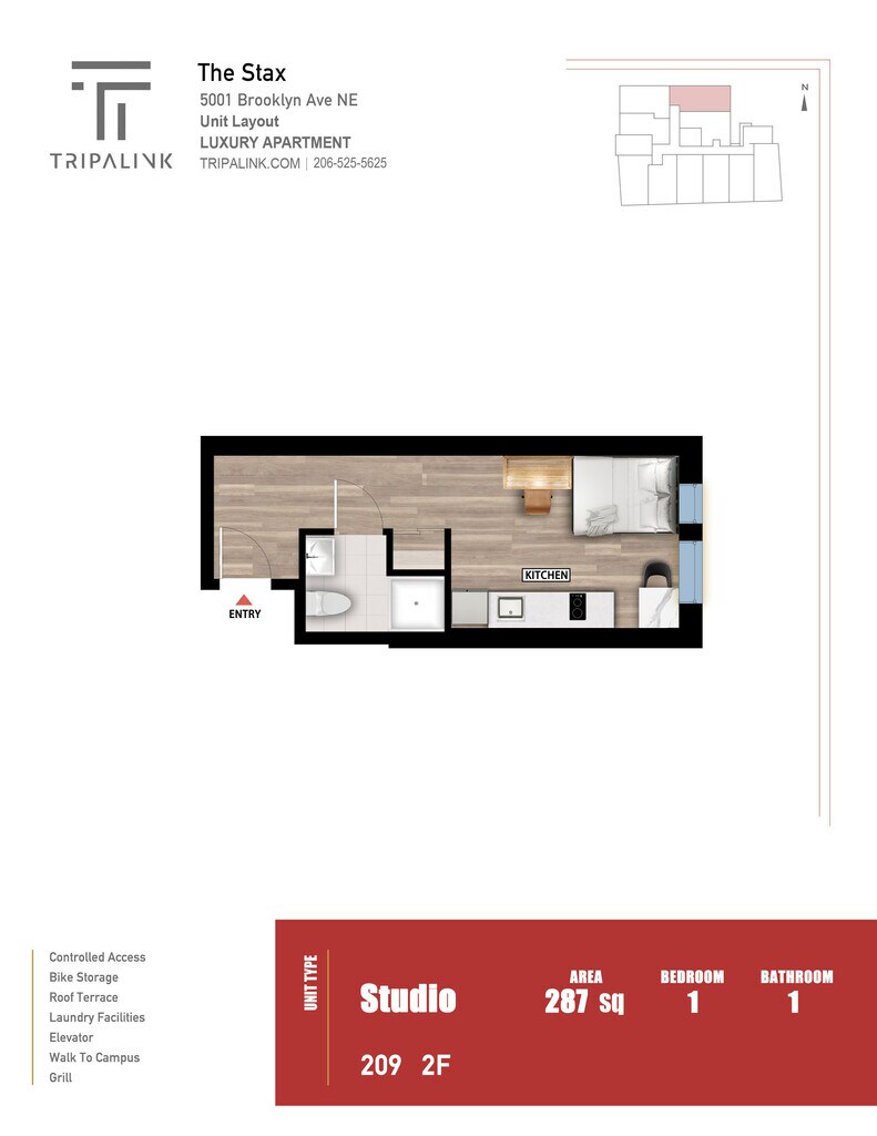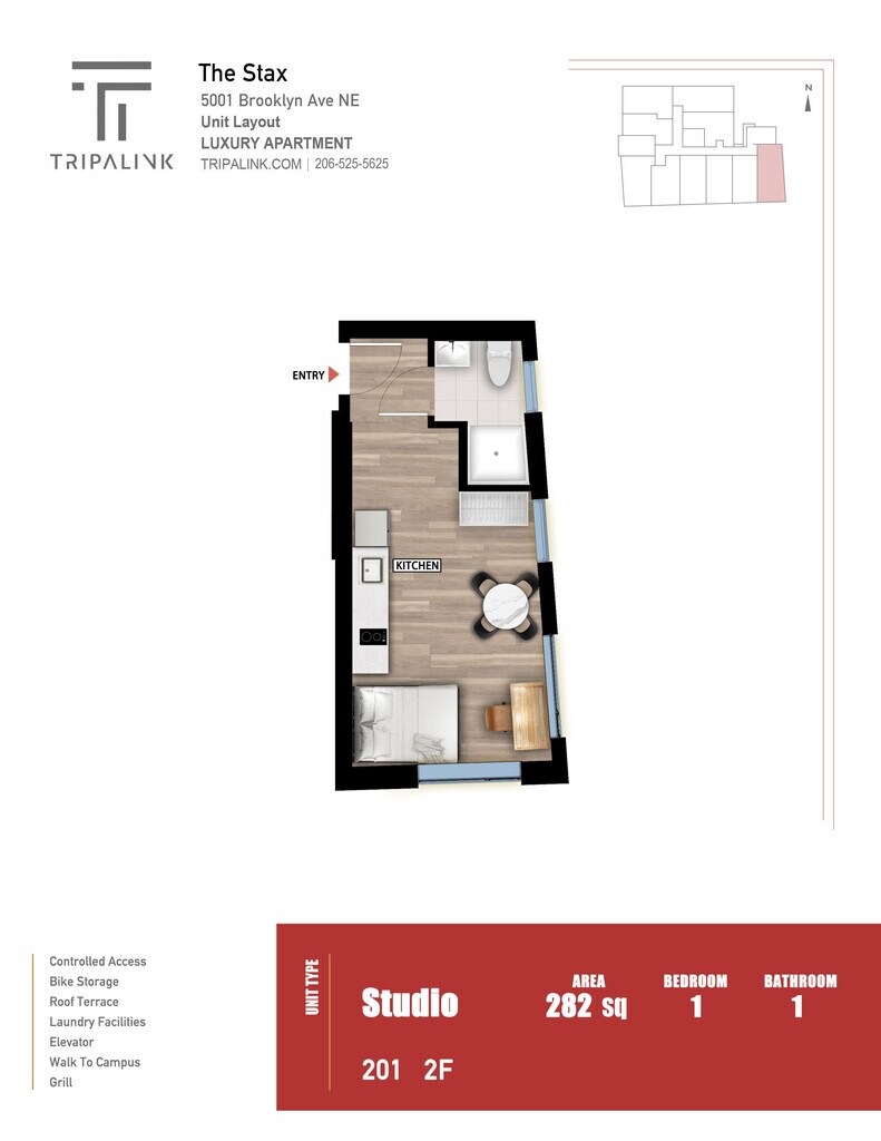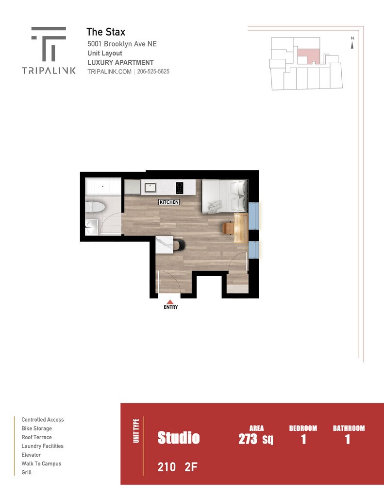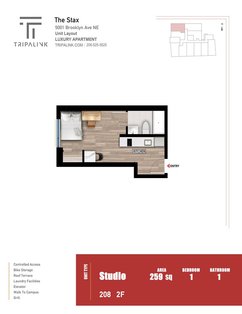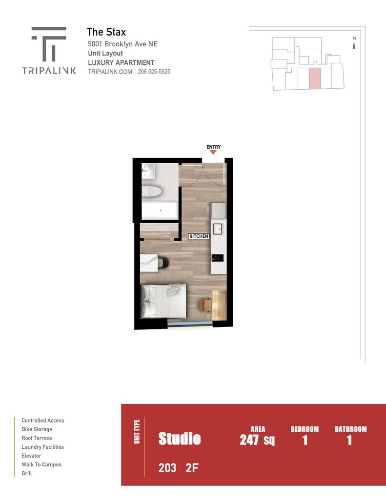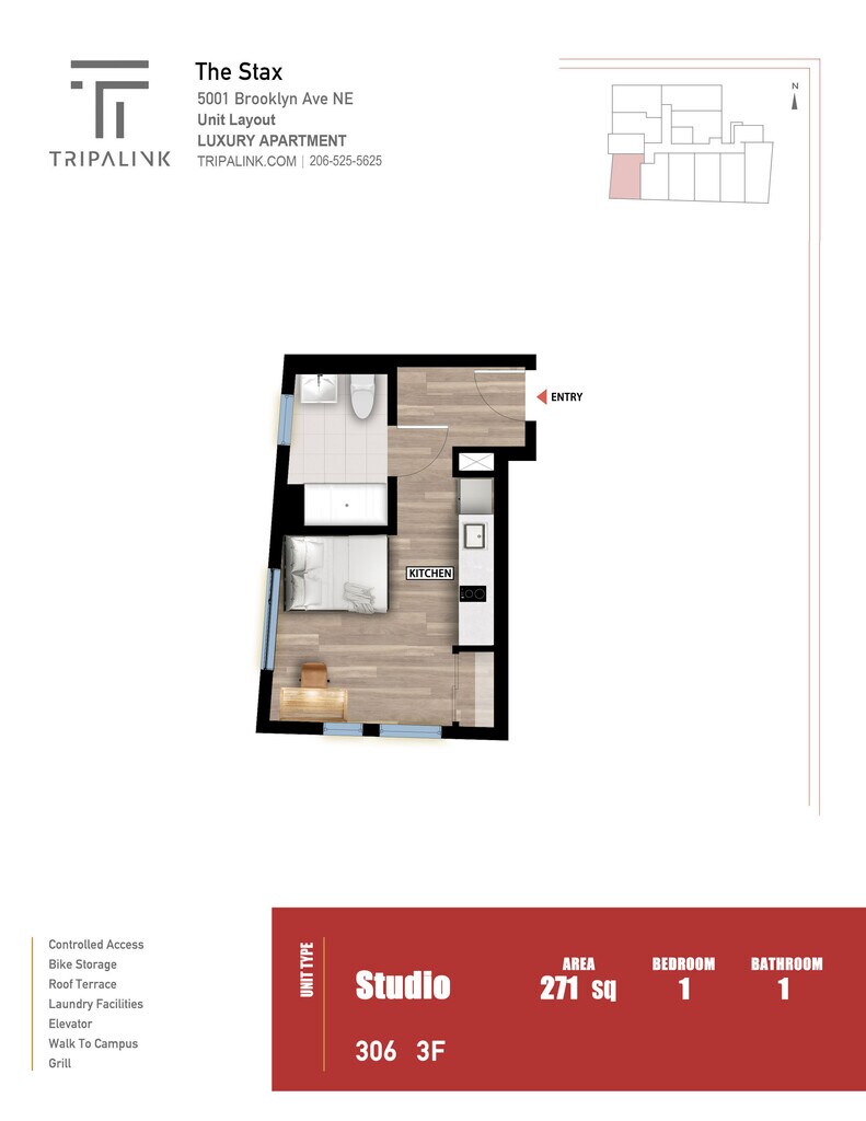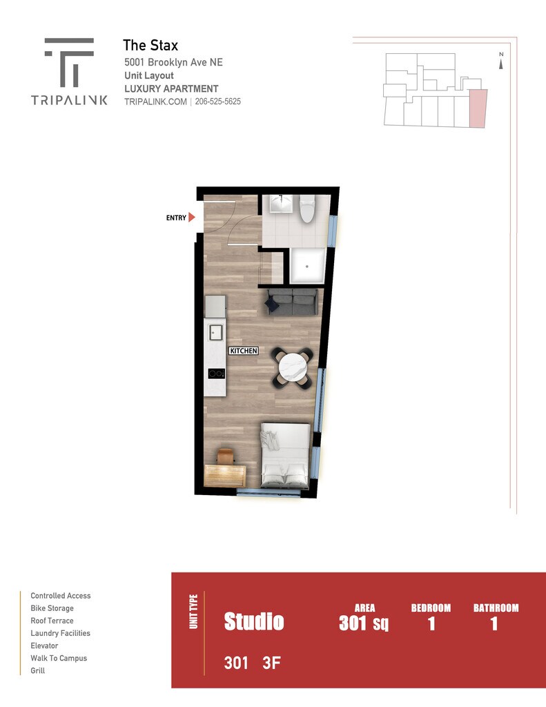 The Stax se encuentra en el Barrio University District y el código postal 98105 de Seattle, WA. Esta comunidad está gestionada profesionalmente por Tripalink