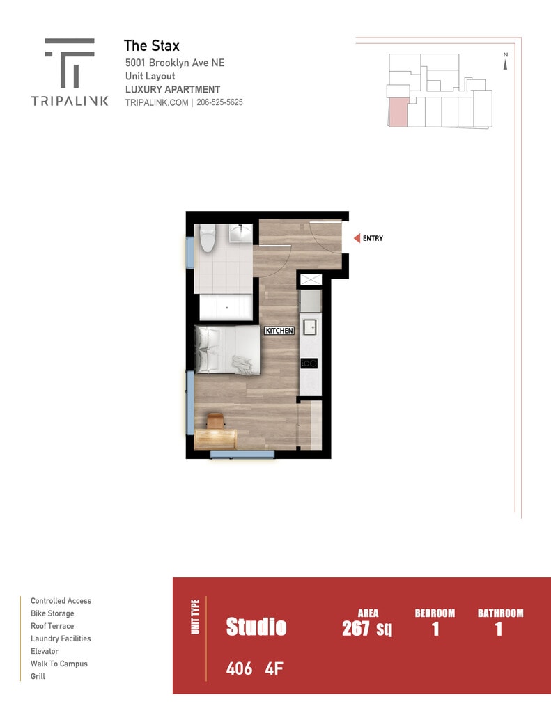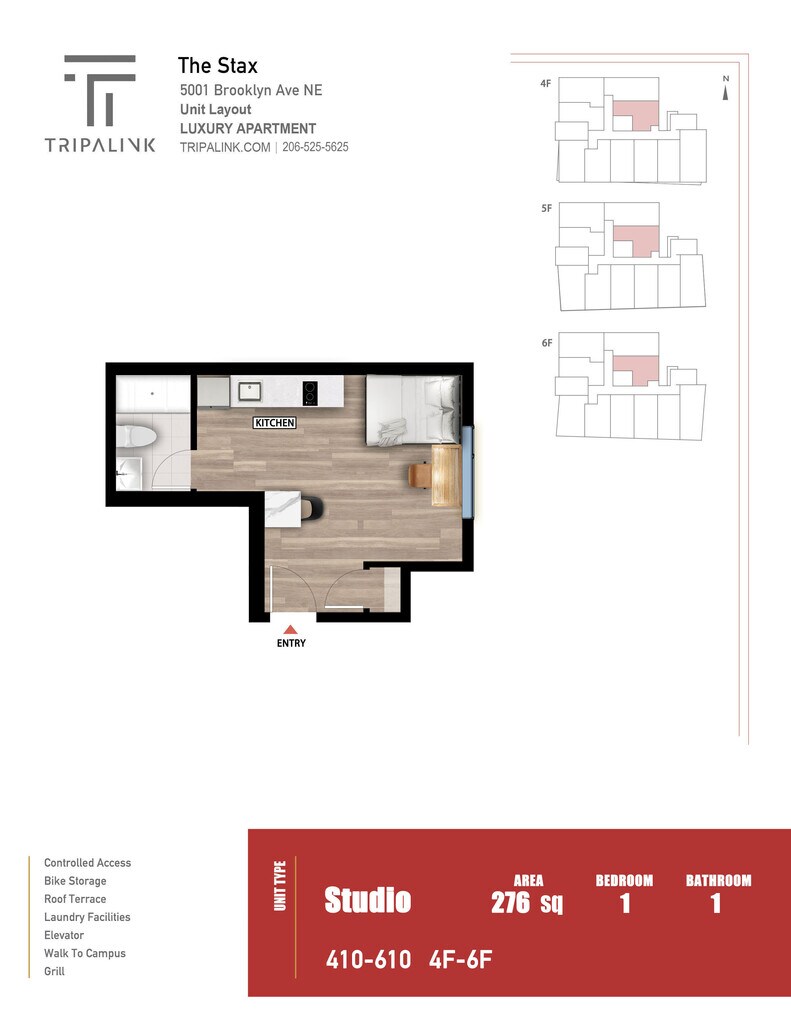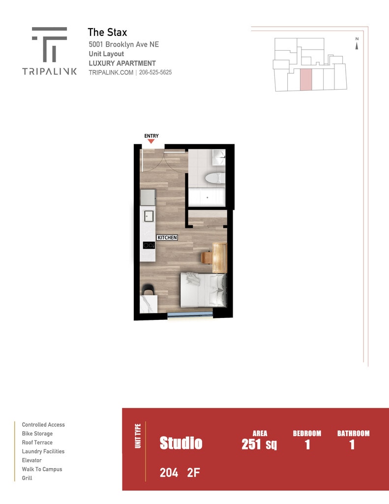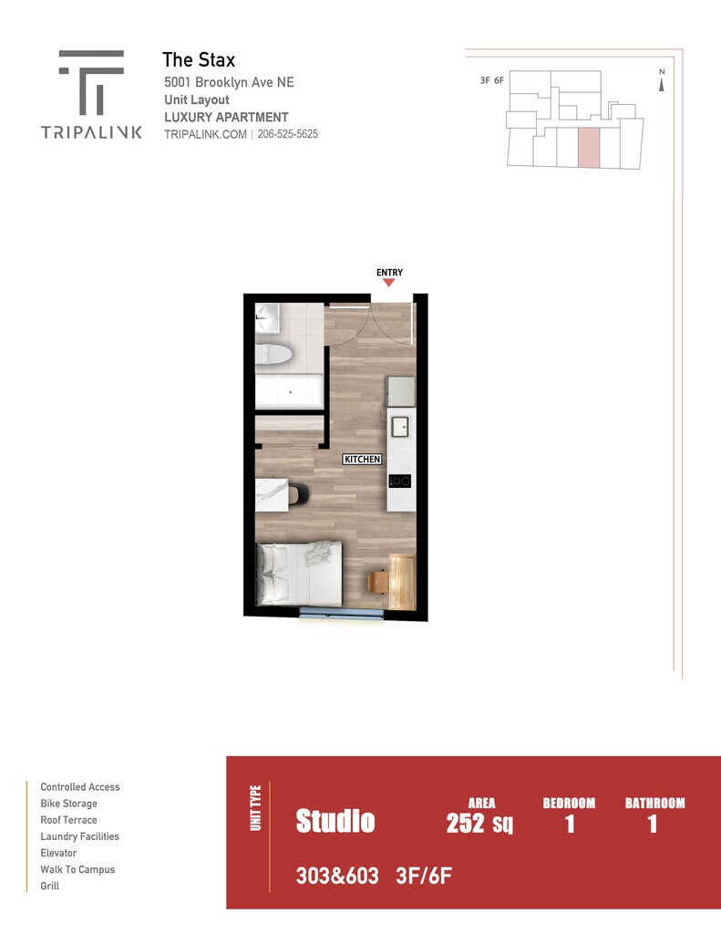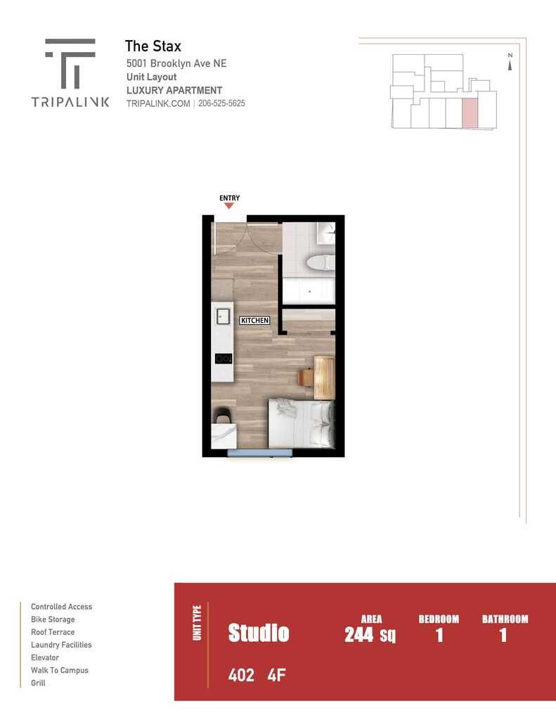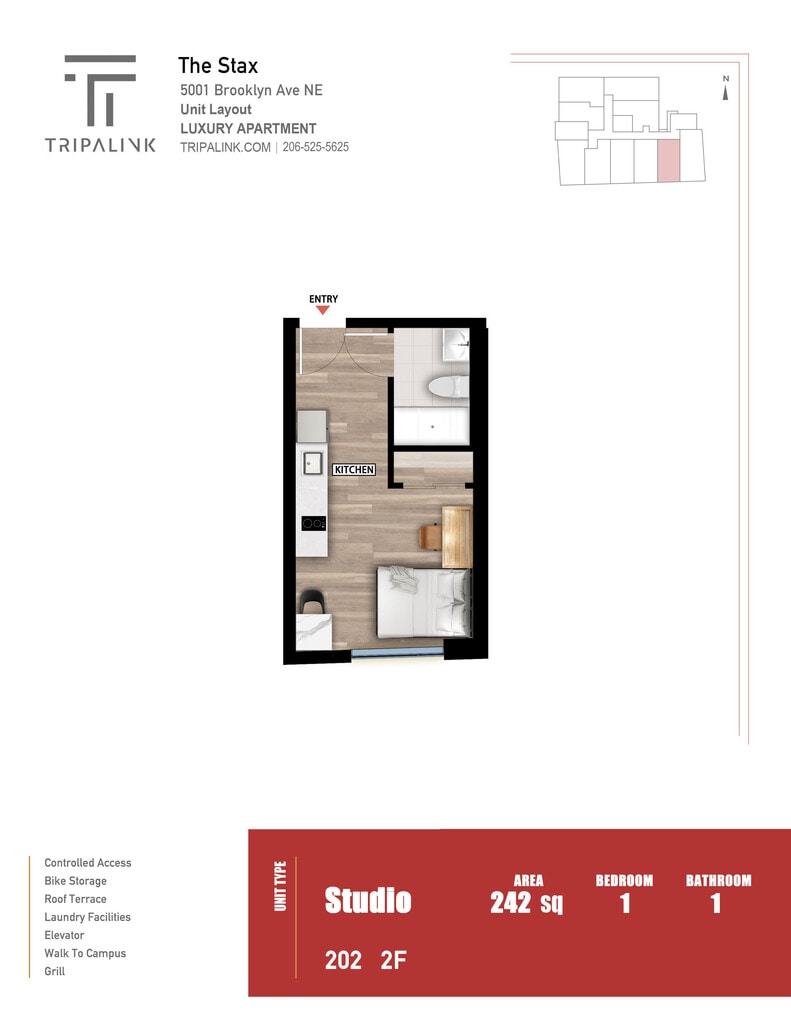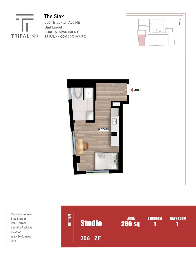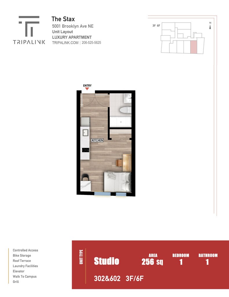 The Stax se encuentra en el Barrio University District y el código postal 98105 de Seattle, WA. Esta comunidad está gestionada profesionalmente por Tripalink