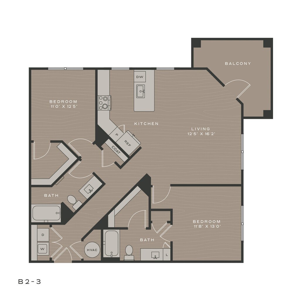 Modelo de apartamento: B1-2Desde $2,0162 Dormitorios, 2 Baños, 1212 sq ftDisponible Ahora![]()