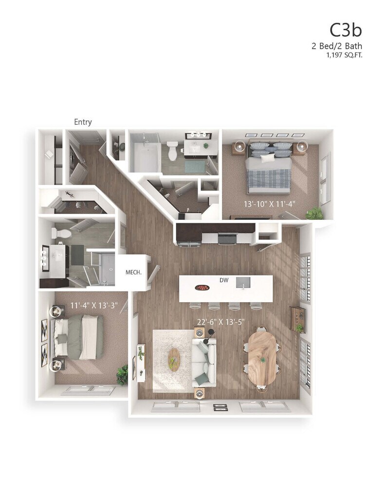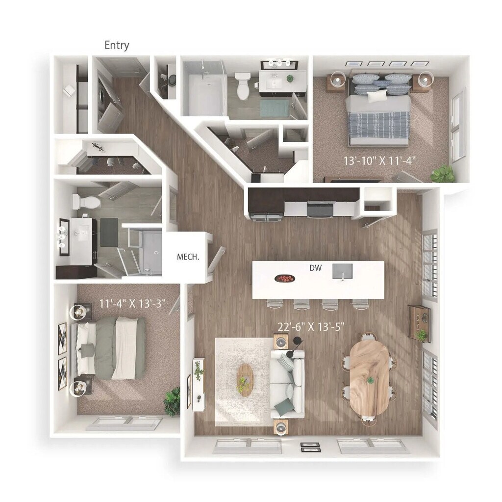 AO - Plano 1 Los planos de la planta son una interpretación artística. Todas las dimensiones son aproximadas. Los tamaños o el detalle del producto real y sus especificaciones pueden variar. No todas las características están disponibles en todos los hogares para rentar. Los precios y la disponibilidad están sujetos a cambios. El alquiler que se muestra es mensual. Se pueden aplicar ciertos cargos, por ejemplo, entrega de paquetes, recolección de basura, agua, servicios, etc. Depositos varian. Consulta a un representante para conocer detalles.