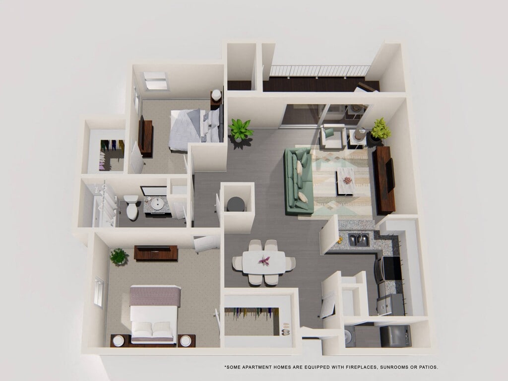 2 Dormitorios, 2 Baños, 1022 pies²Galería del Modelo