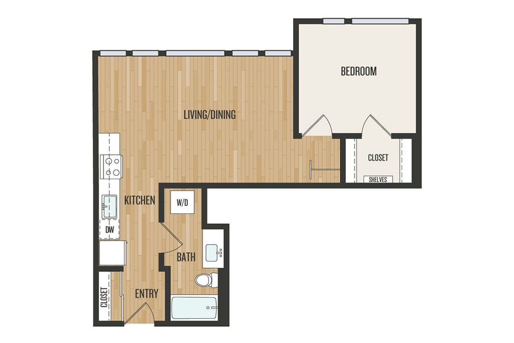 Modelo de apartamento: Urban 1 Bedroom U1Desde $1,4501 Dormitorio, 1 Baño, 546 sq ftDisponible Ahora![]()