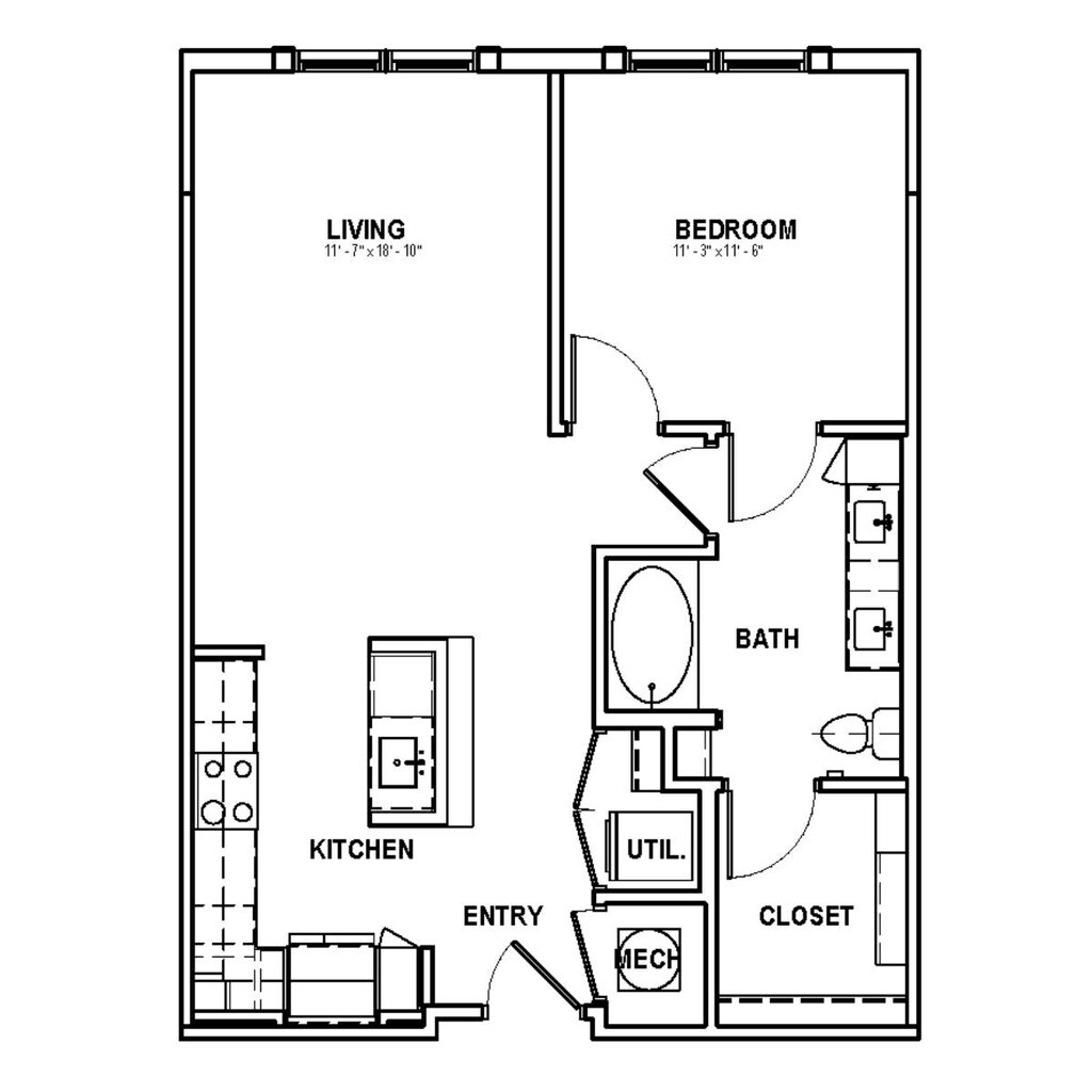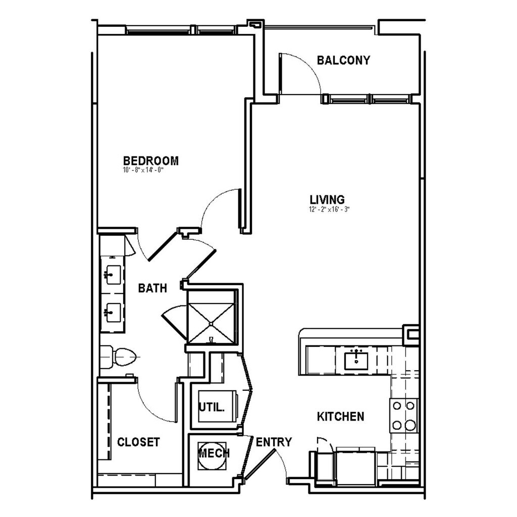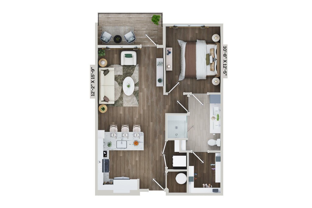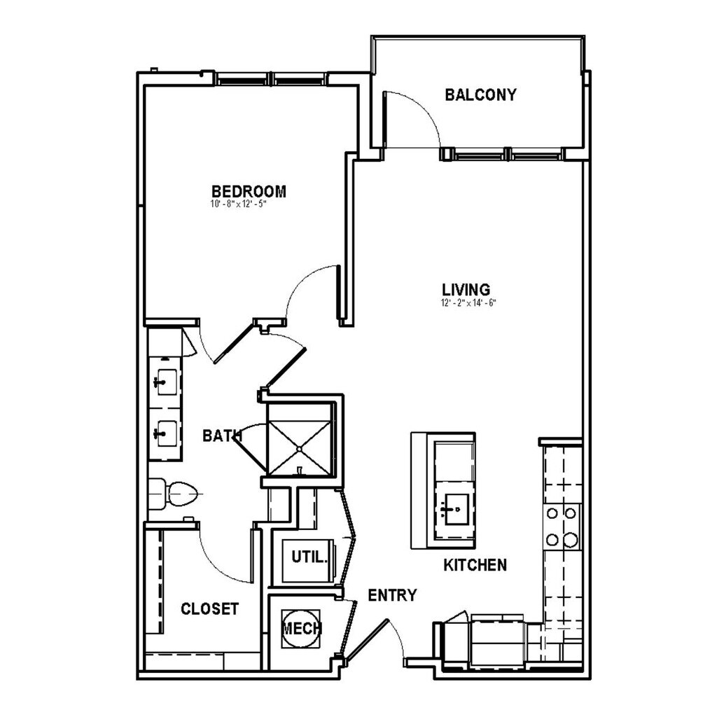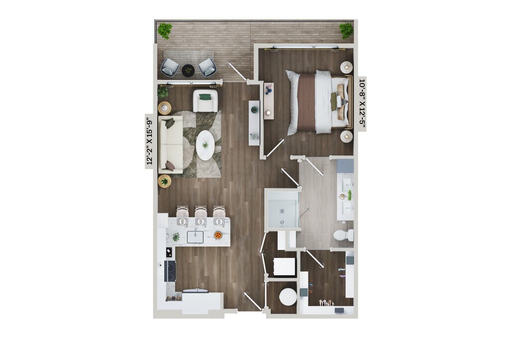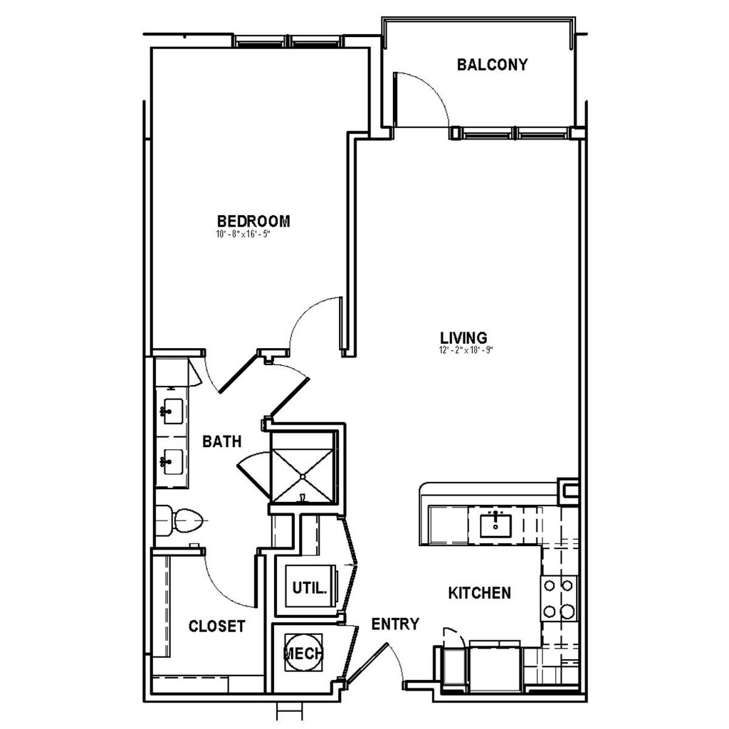 1 Dormitorio, 1 Baño, 730 pies²Disponible AhoraGalería del Modelo