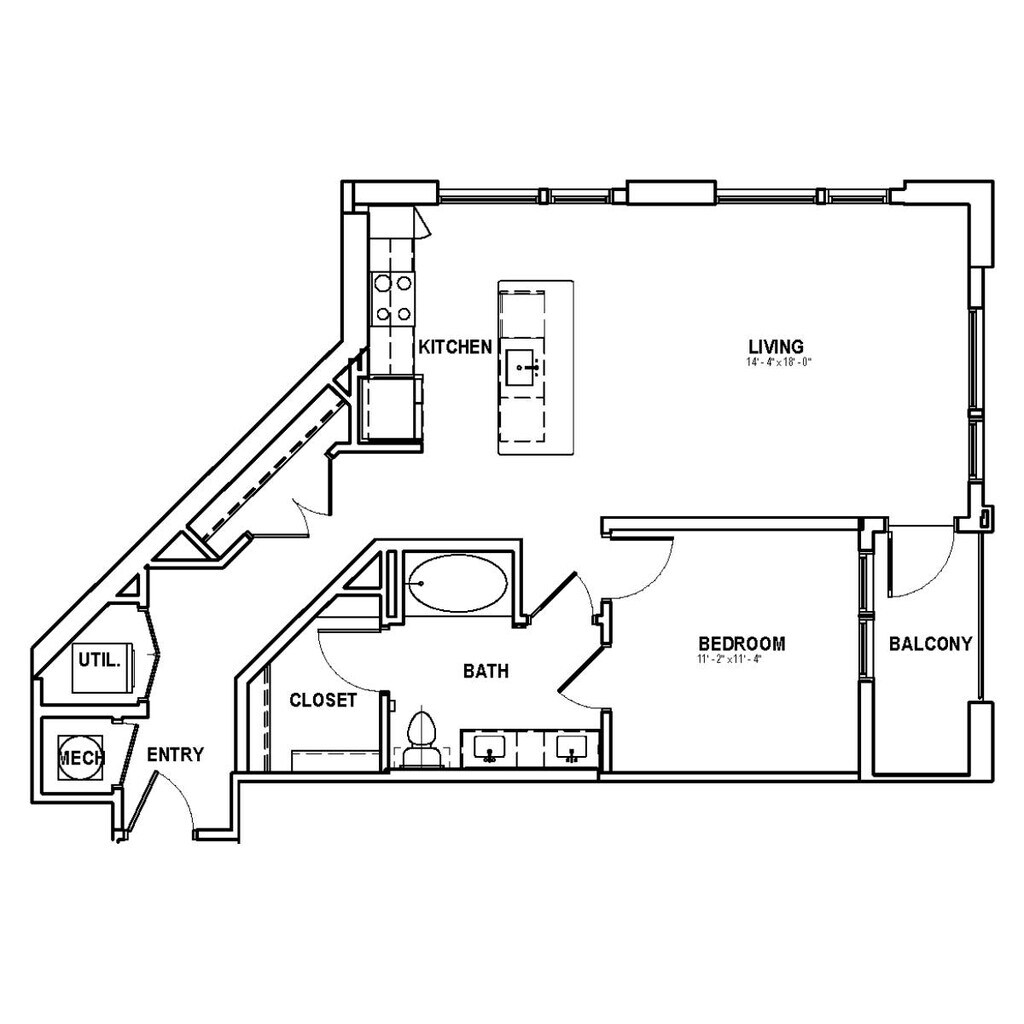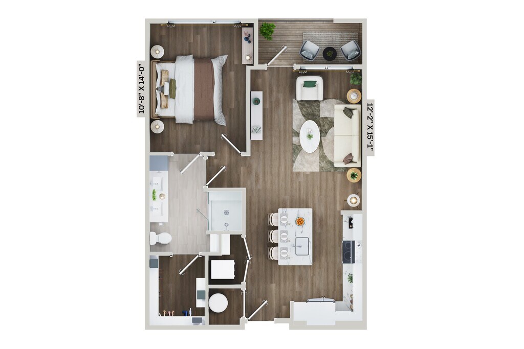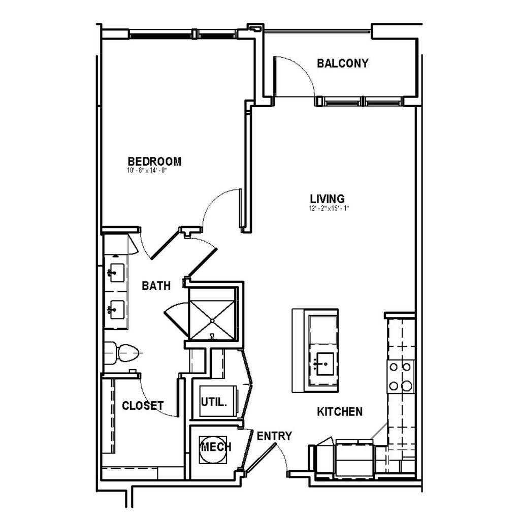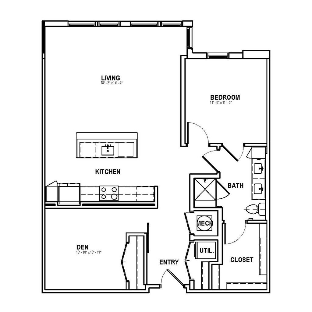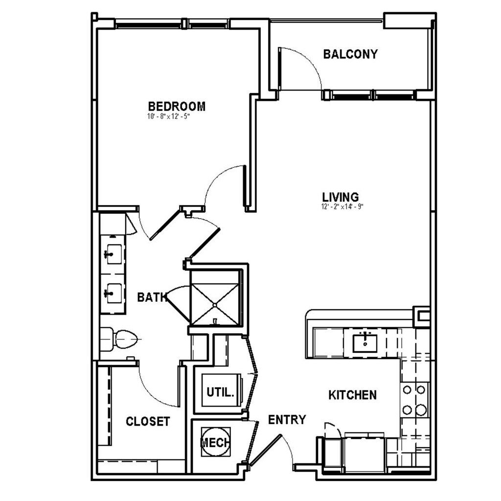 1 Dormitorio, 1 Baño, 730 pies²Disponible AhoraGalería del Modelo