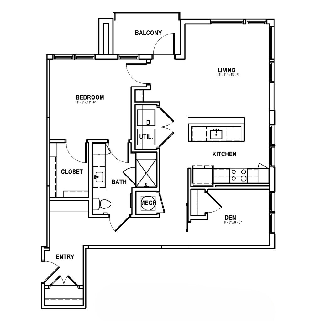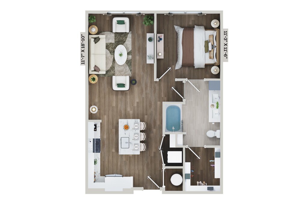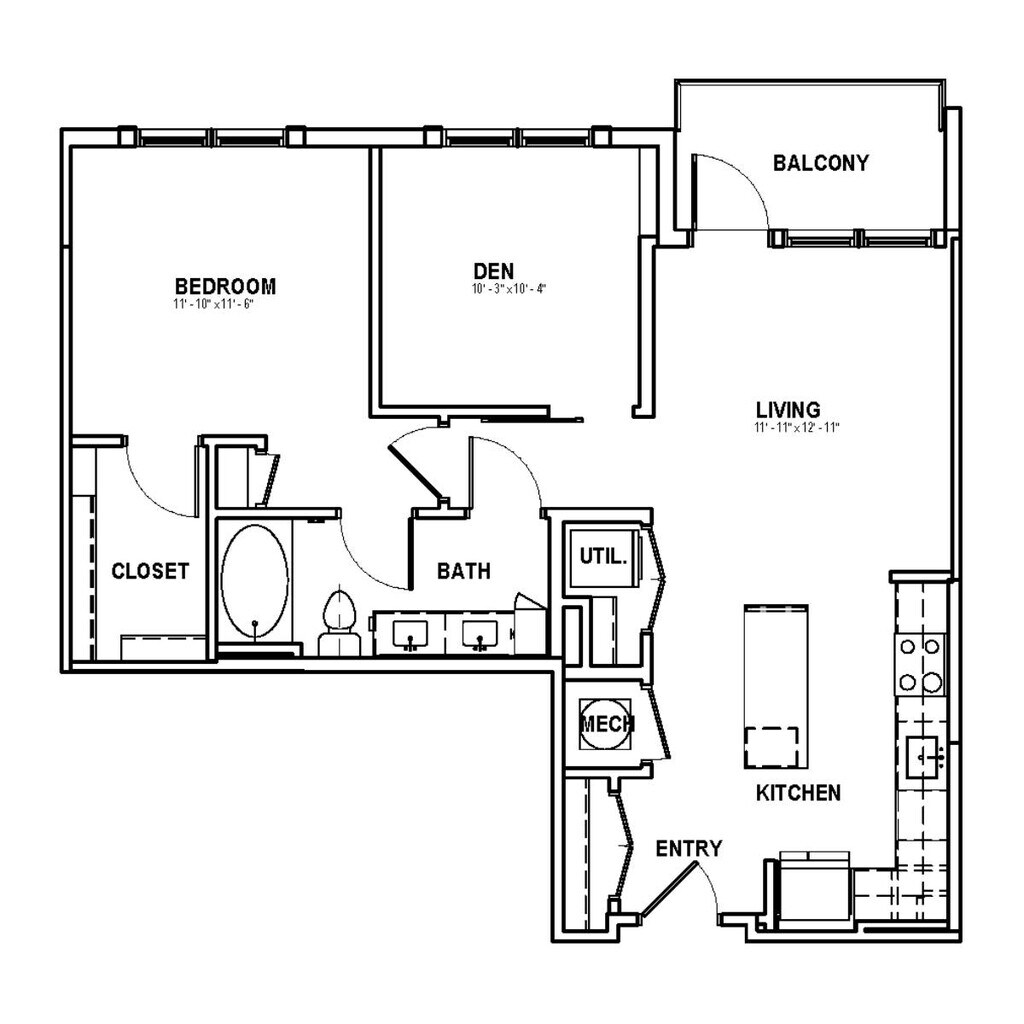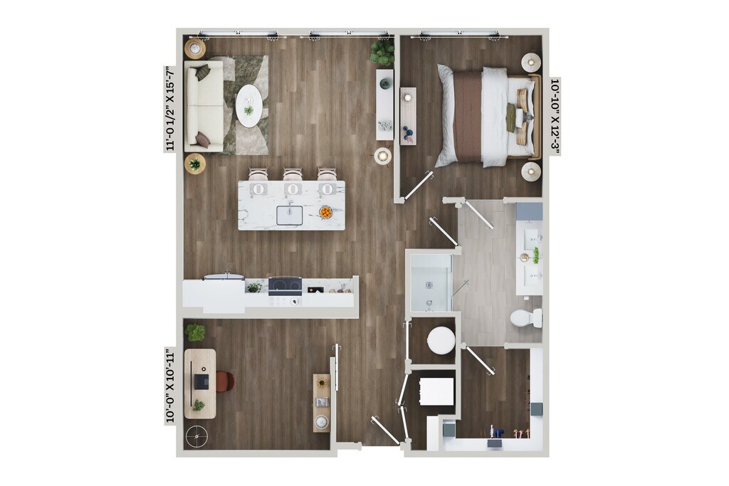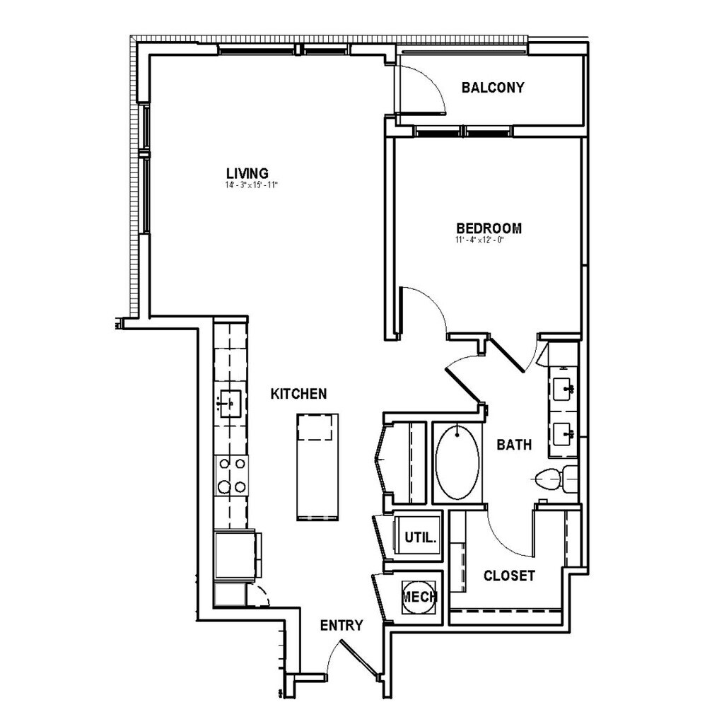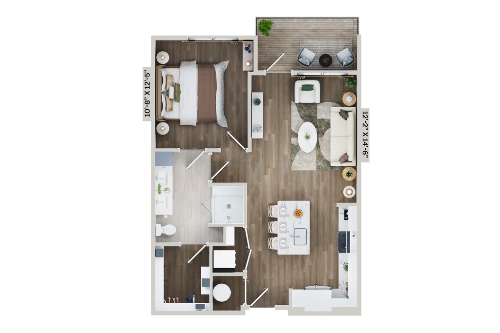 1 Dormitorio, 1 Baño, 730 pies²Disponible AhoraGalería del Modelo