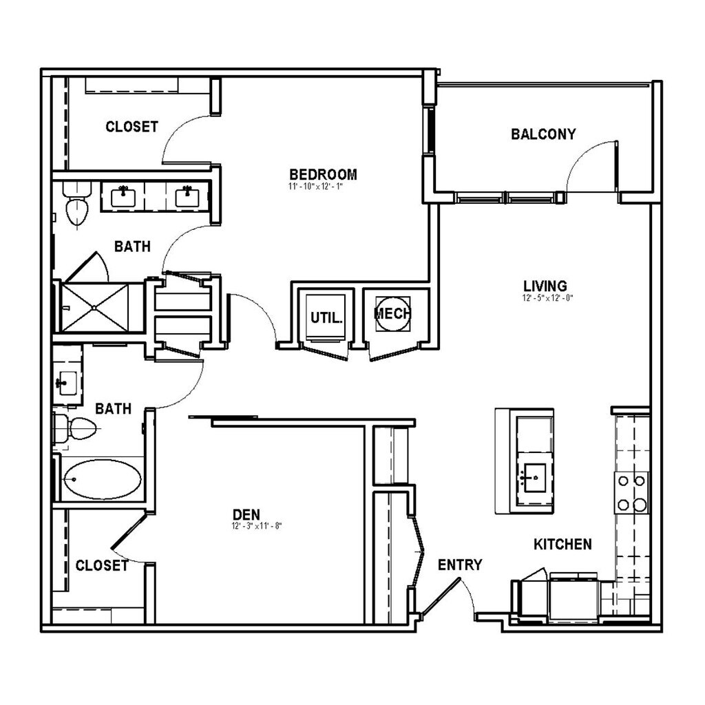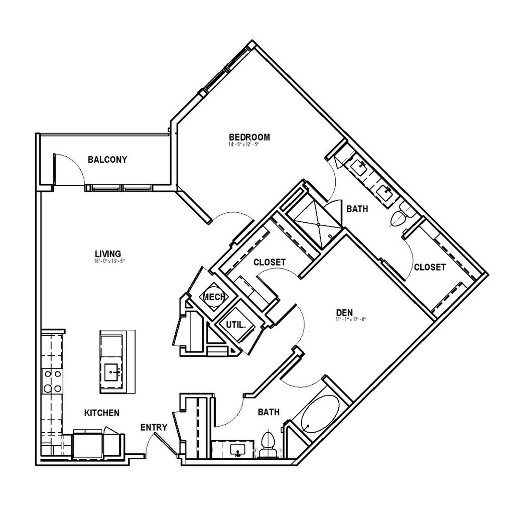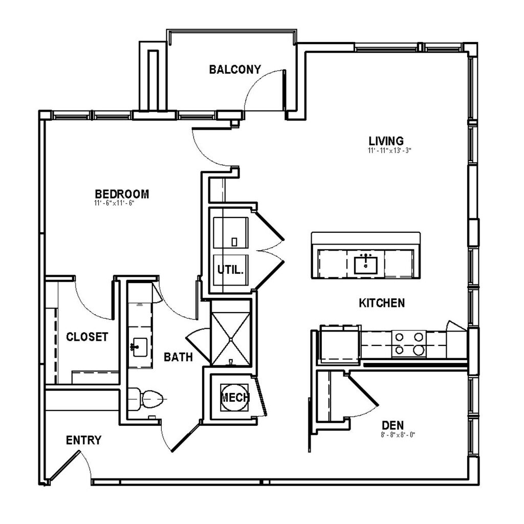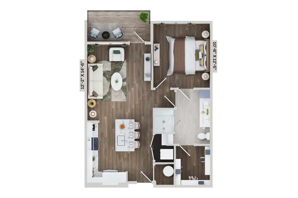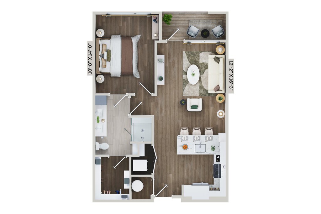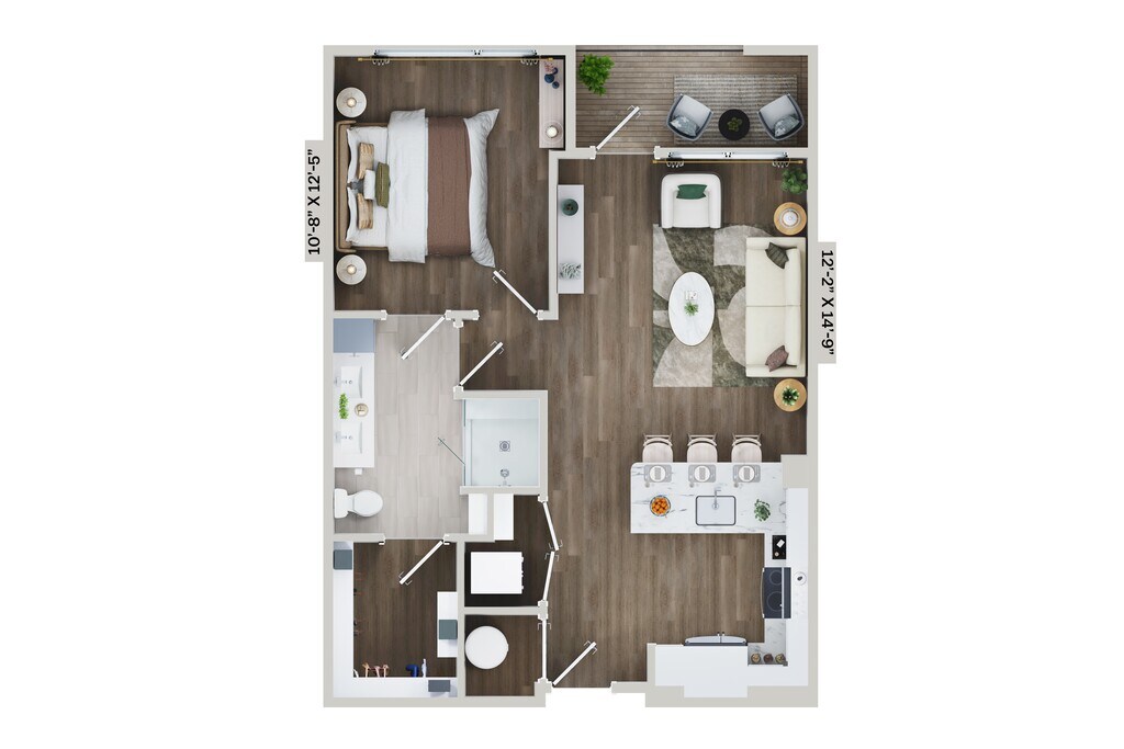 1 Dormitorio, 1 Baño, 730 pies²Disponible AhoraGalería del Modelo