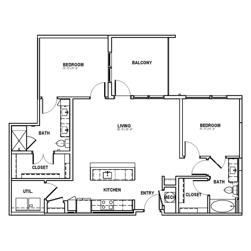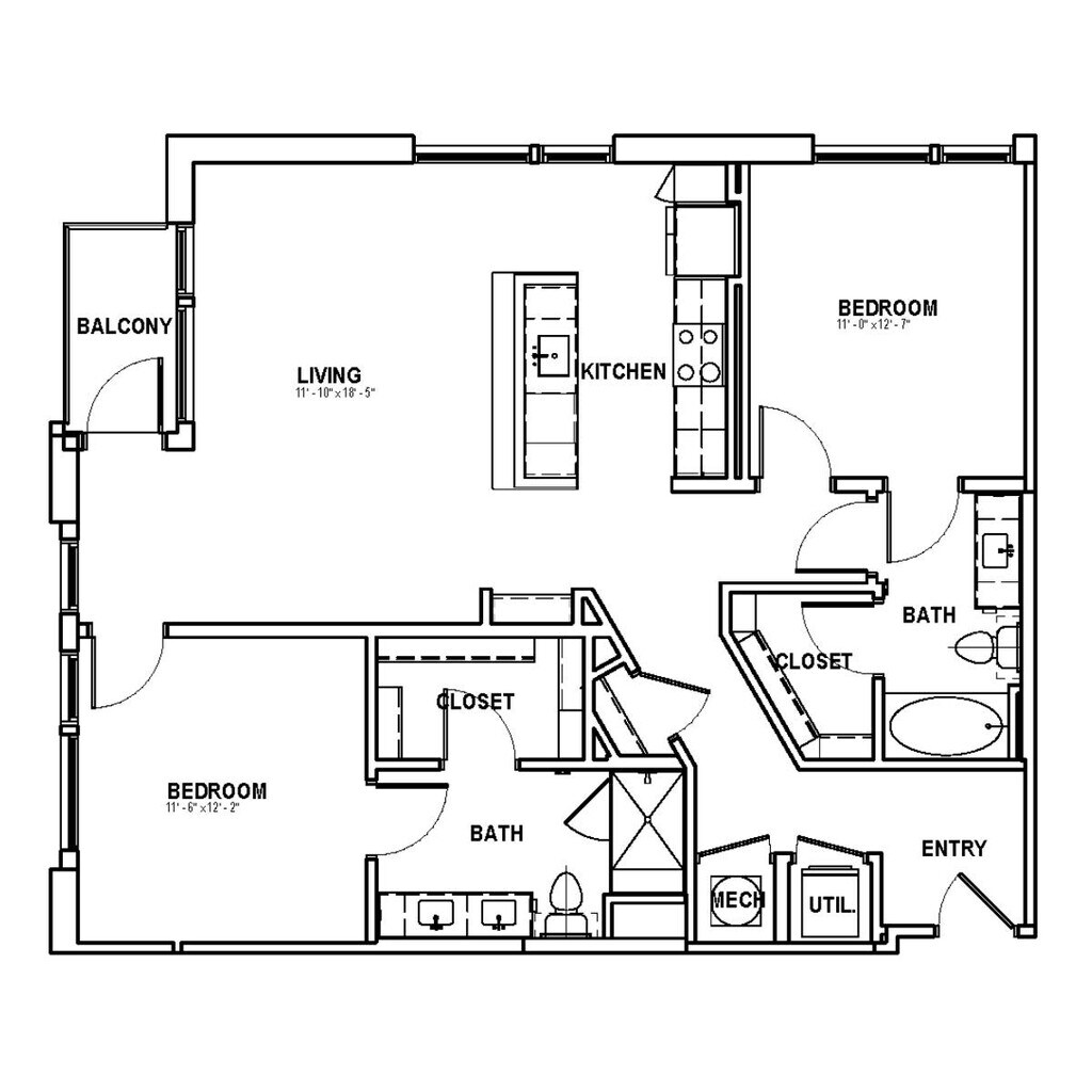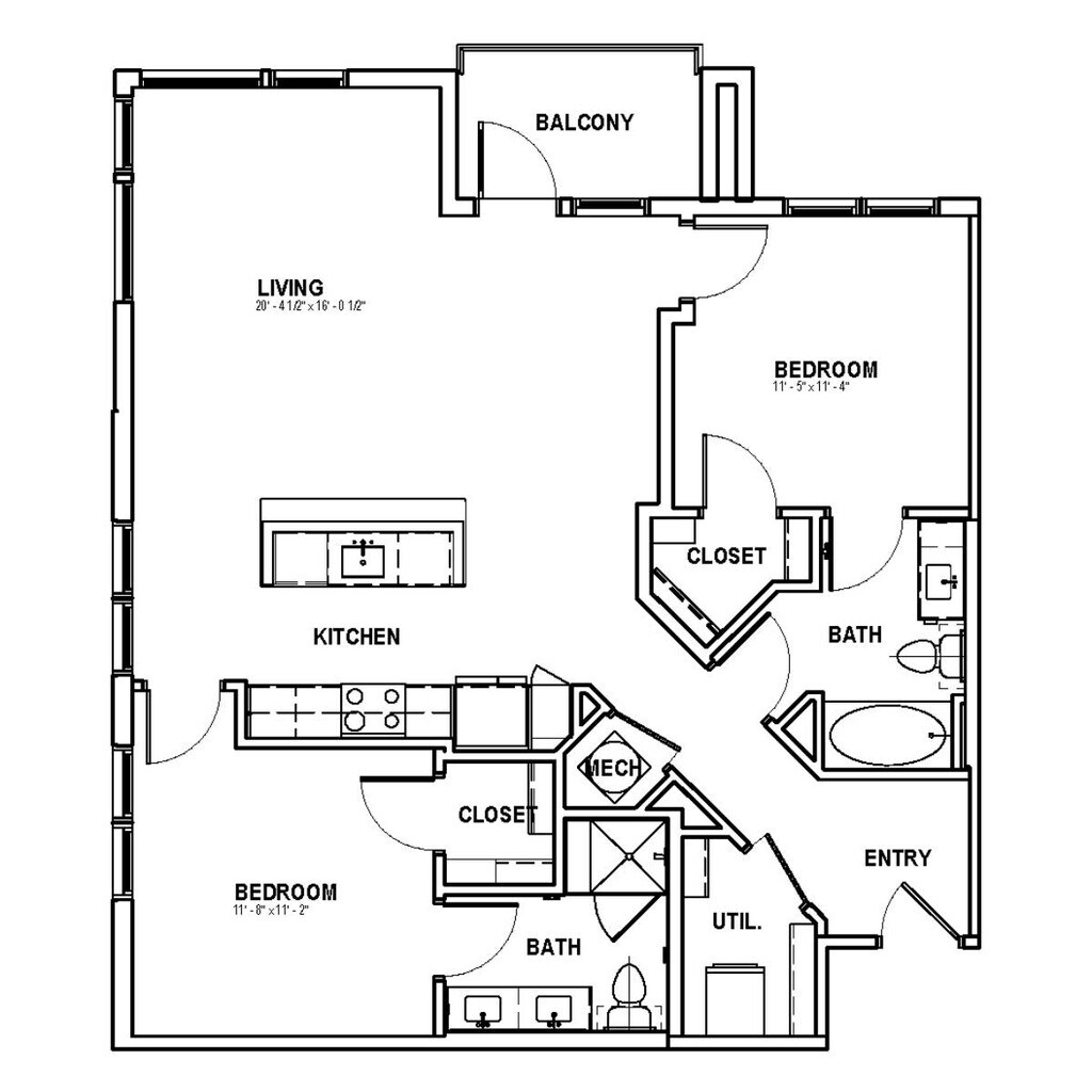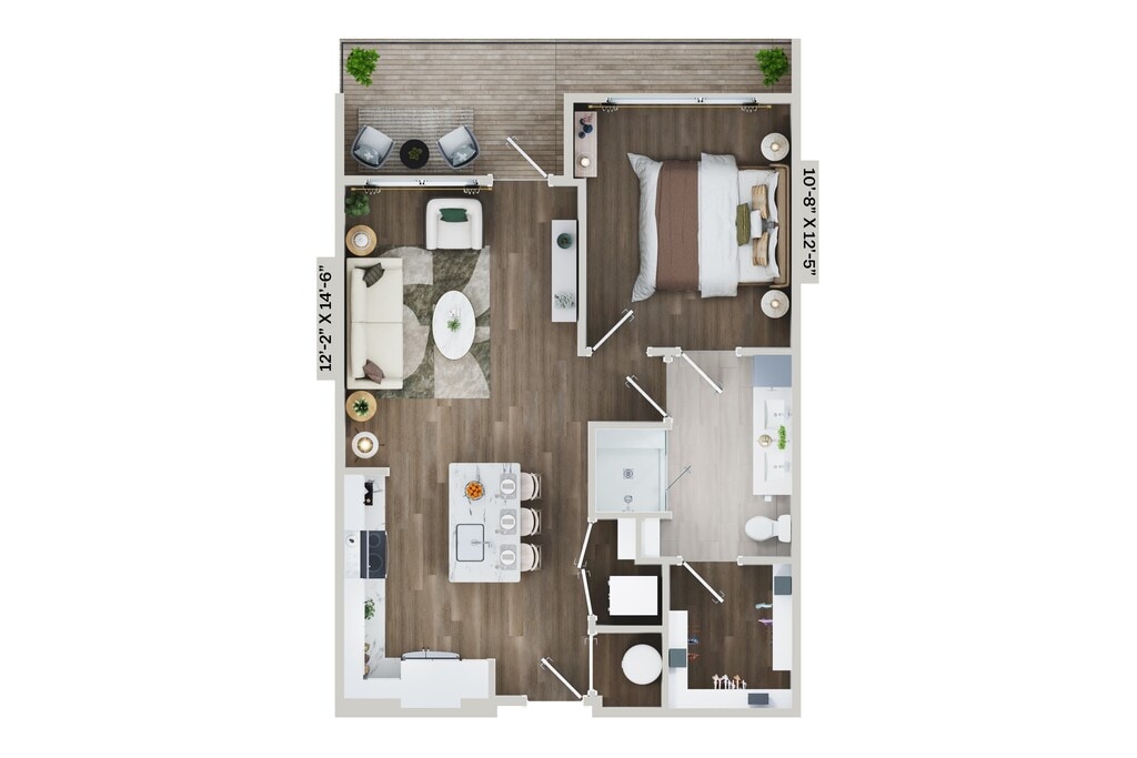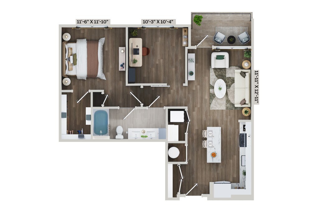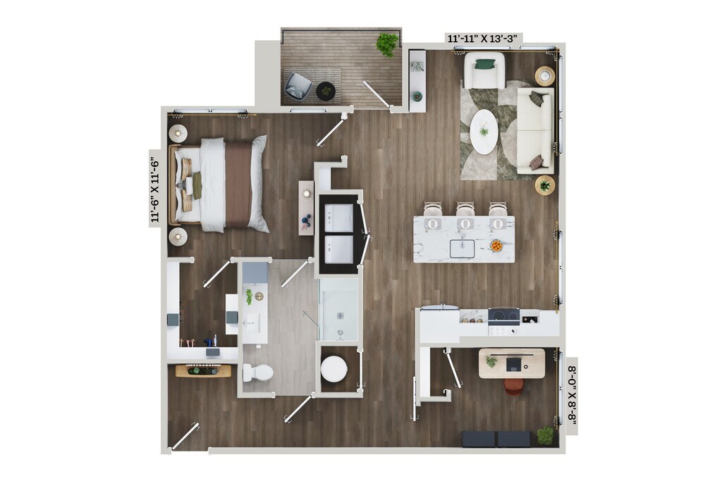 1 Dormitorio, 1 Baño, 730 pies²Disponible AhoraGalería del Modelo