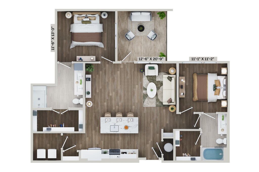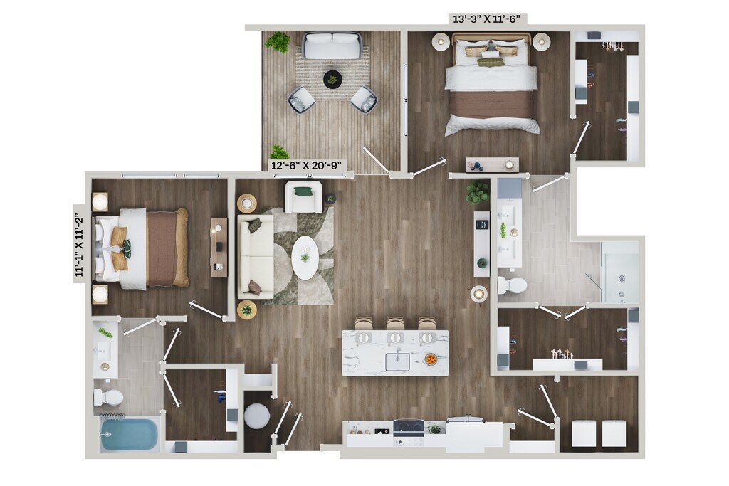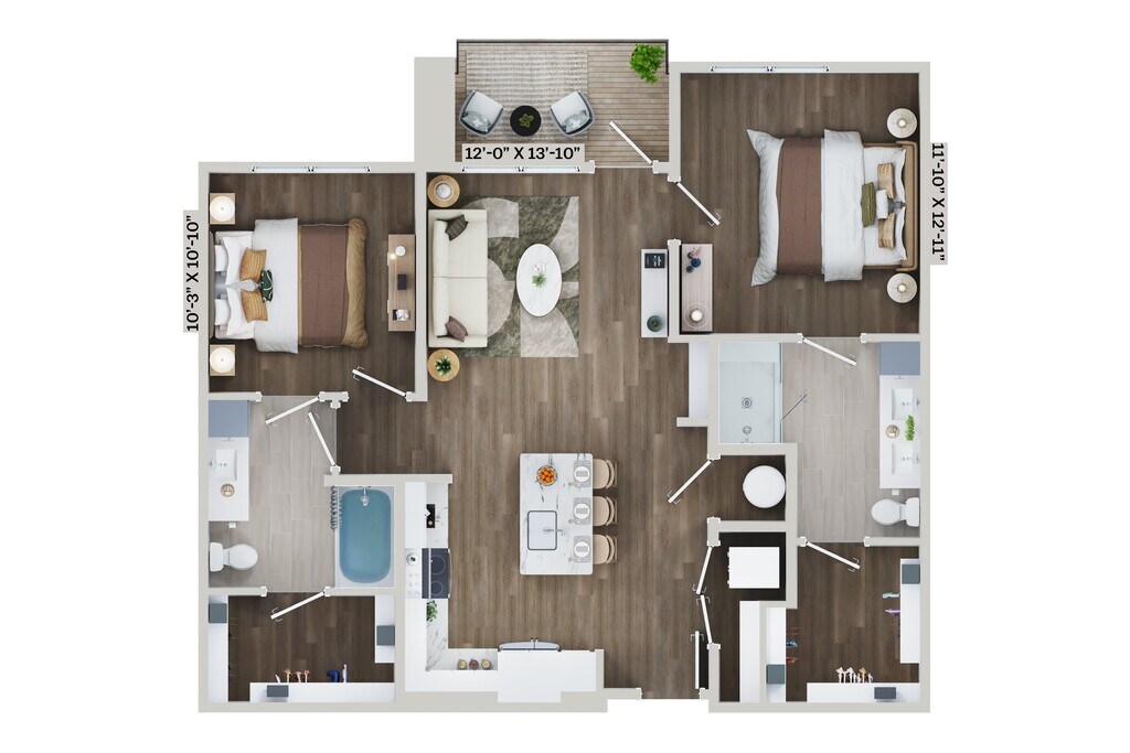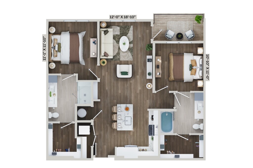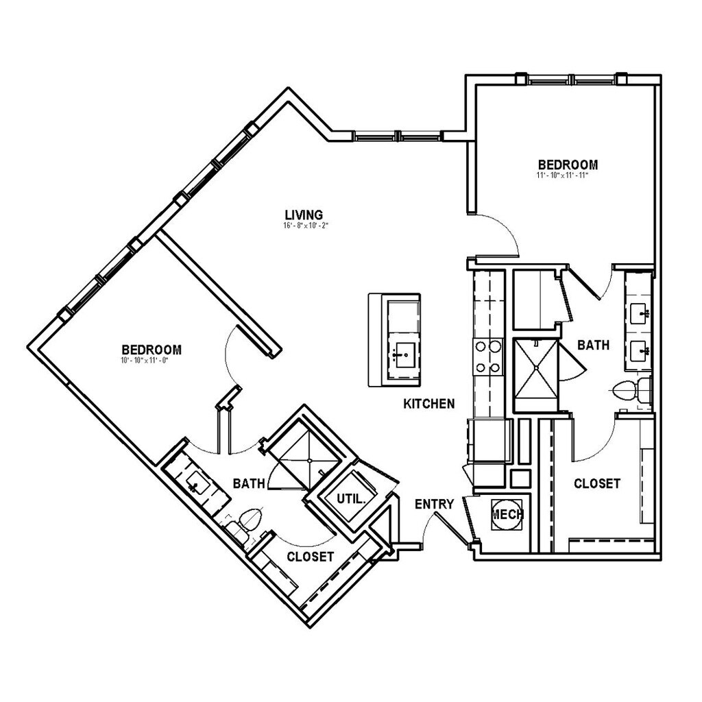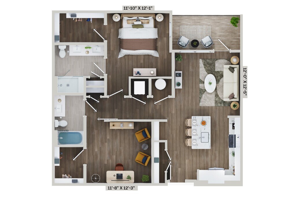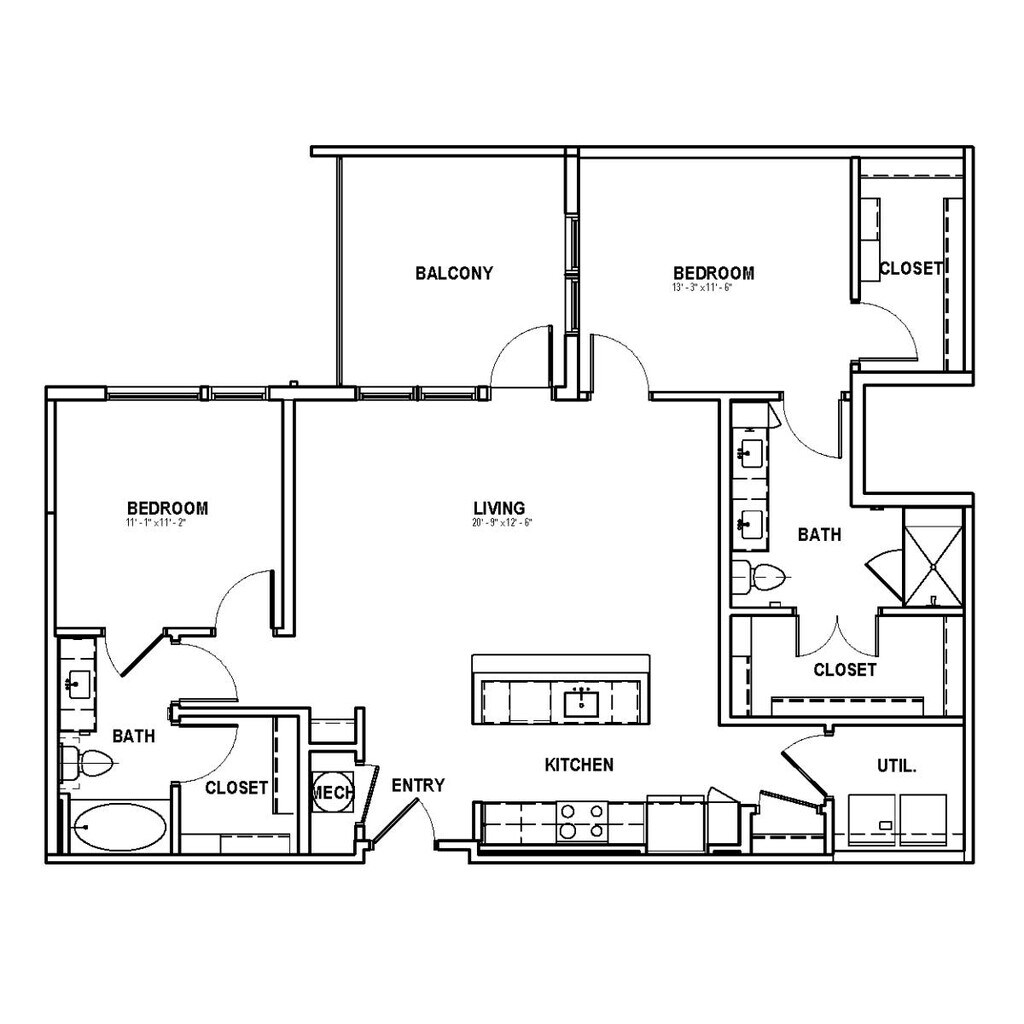 1 Dormitorio, 1 Baño, 730 pies²Disponible AhoraGalería del Modelo