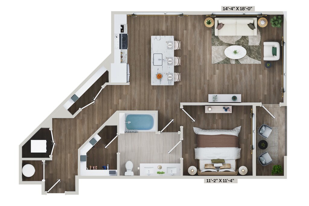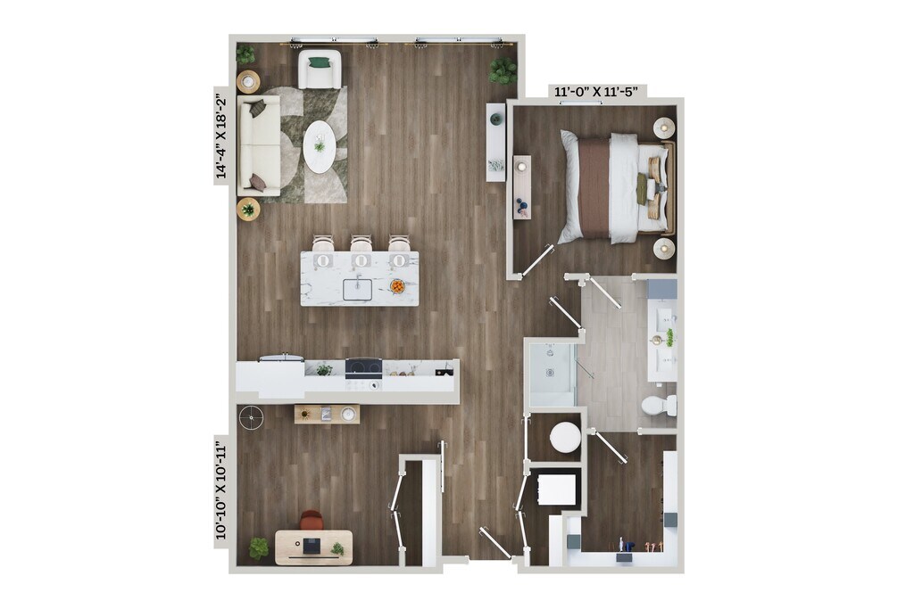 1 Dormitorio, 1 Baño, 718 pies²Disponible AhoraGalería del Modelo