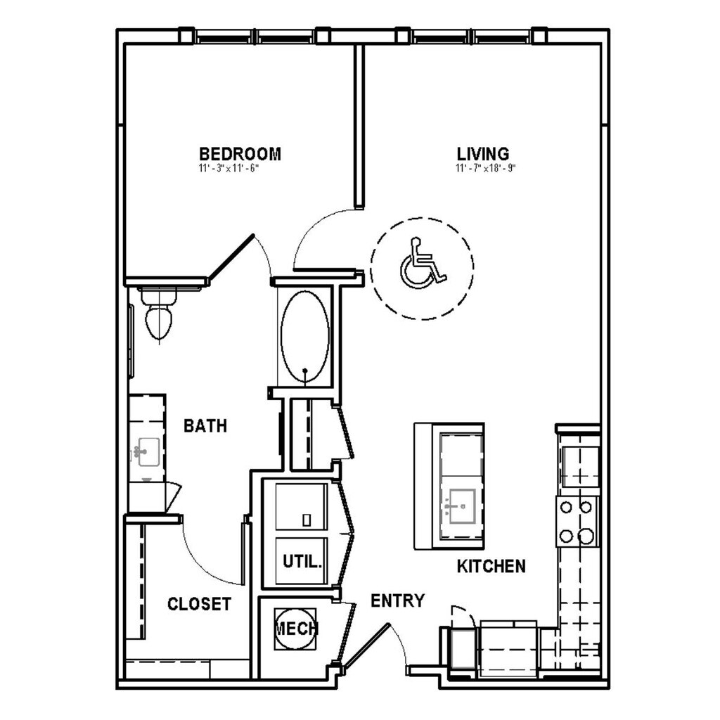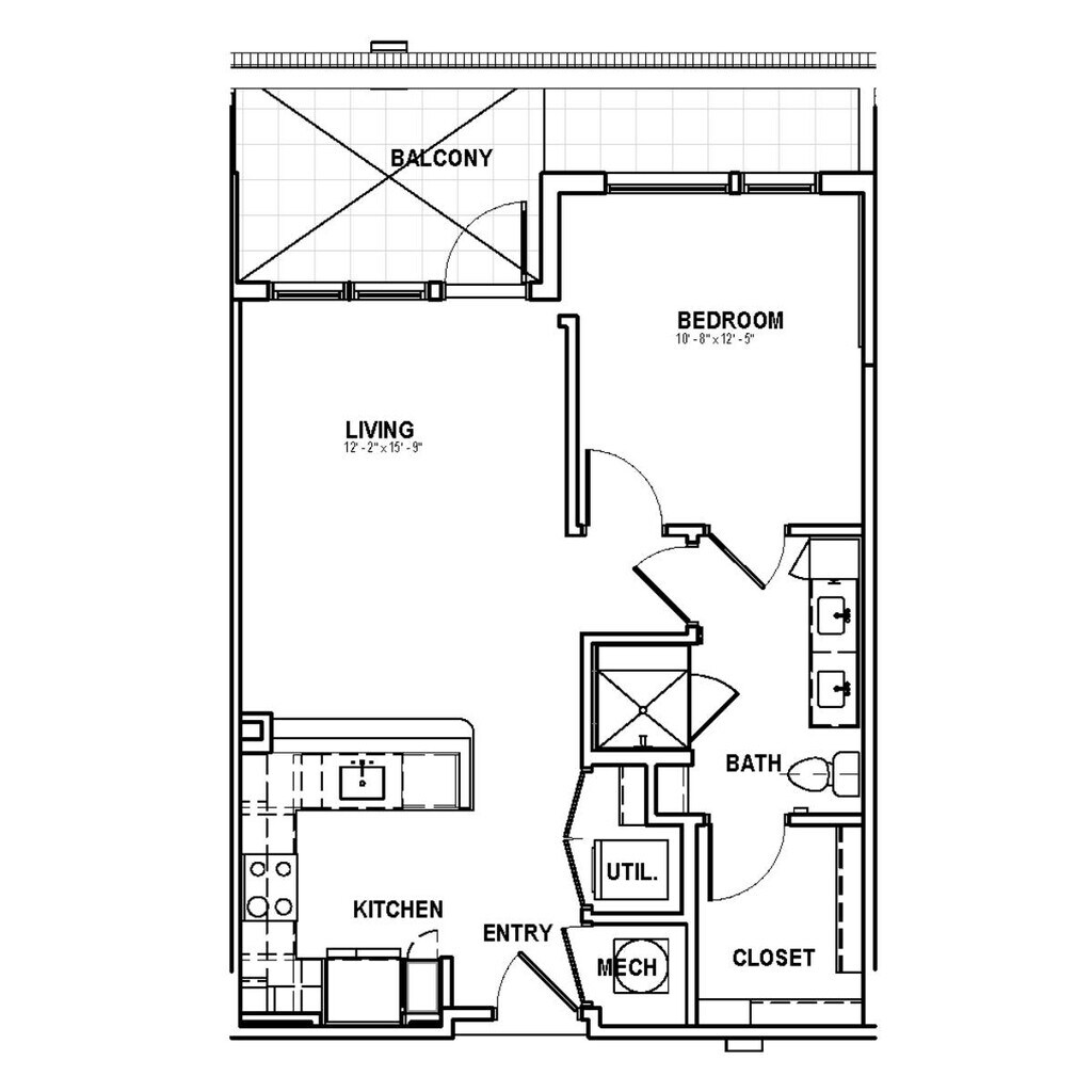 Modelo de apartamento: A1A$2,2051 Dormitorio, 1 Baño, 588 sq ftDisponible Ahora![]()