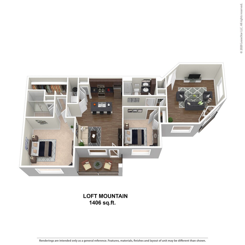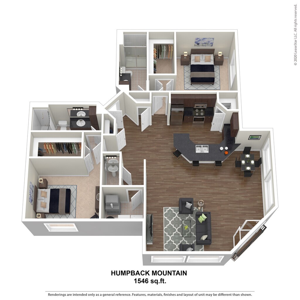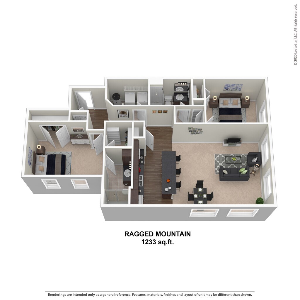 Modelo de apartamento: Ragged MountainLlame para Precios2 Dormitorios, 2 Baños, 1233 sq ftNo Disponible![]()