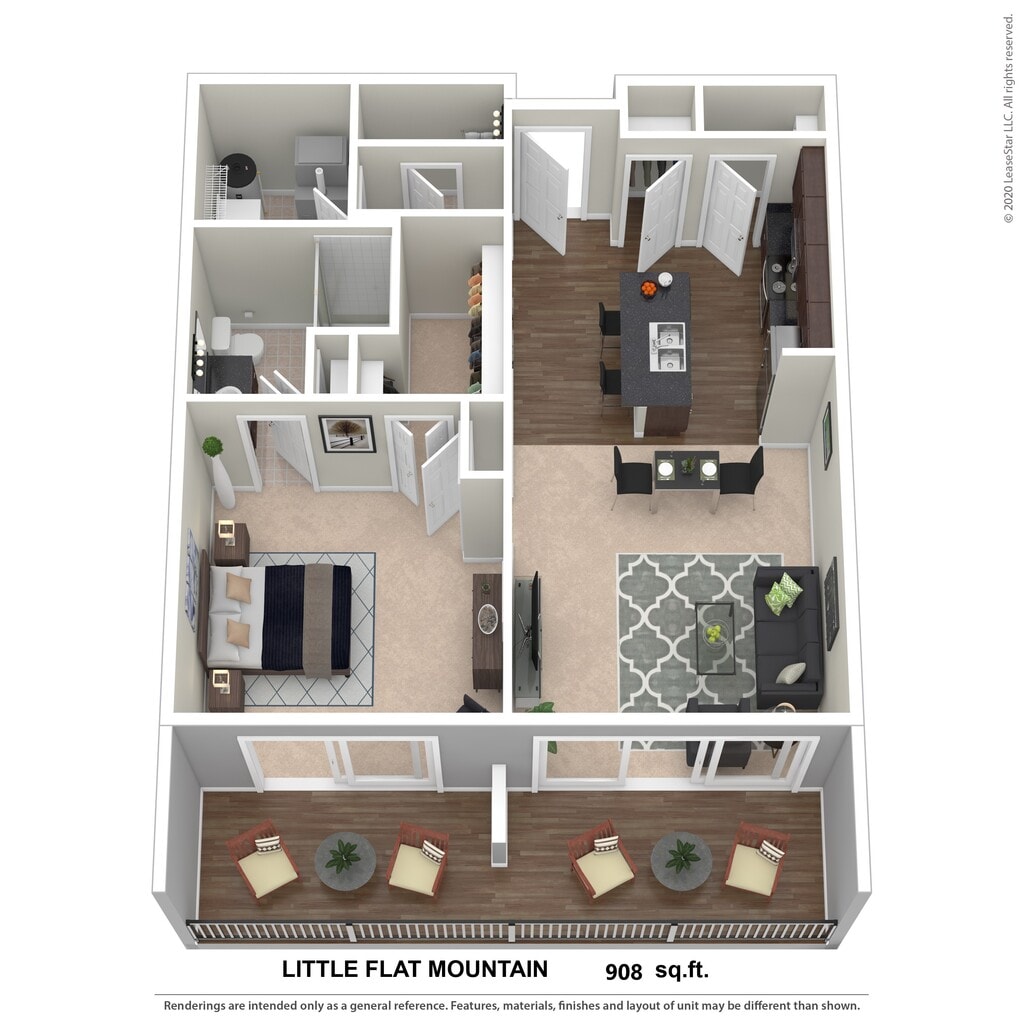 Modelo de apartamento: Little Flat MountainLlame para Precios1 Dormitorio, 1.5 Baños, 908 sq ftNo Disponible![]()