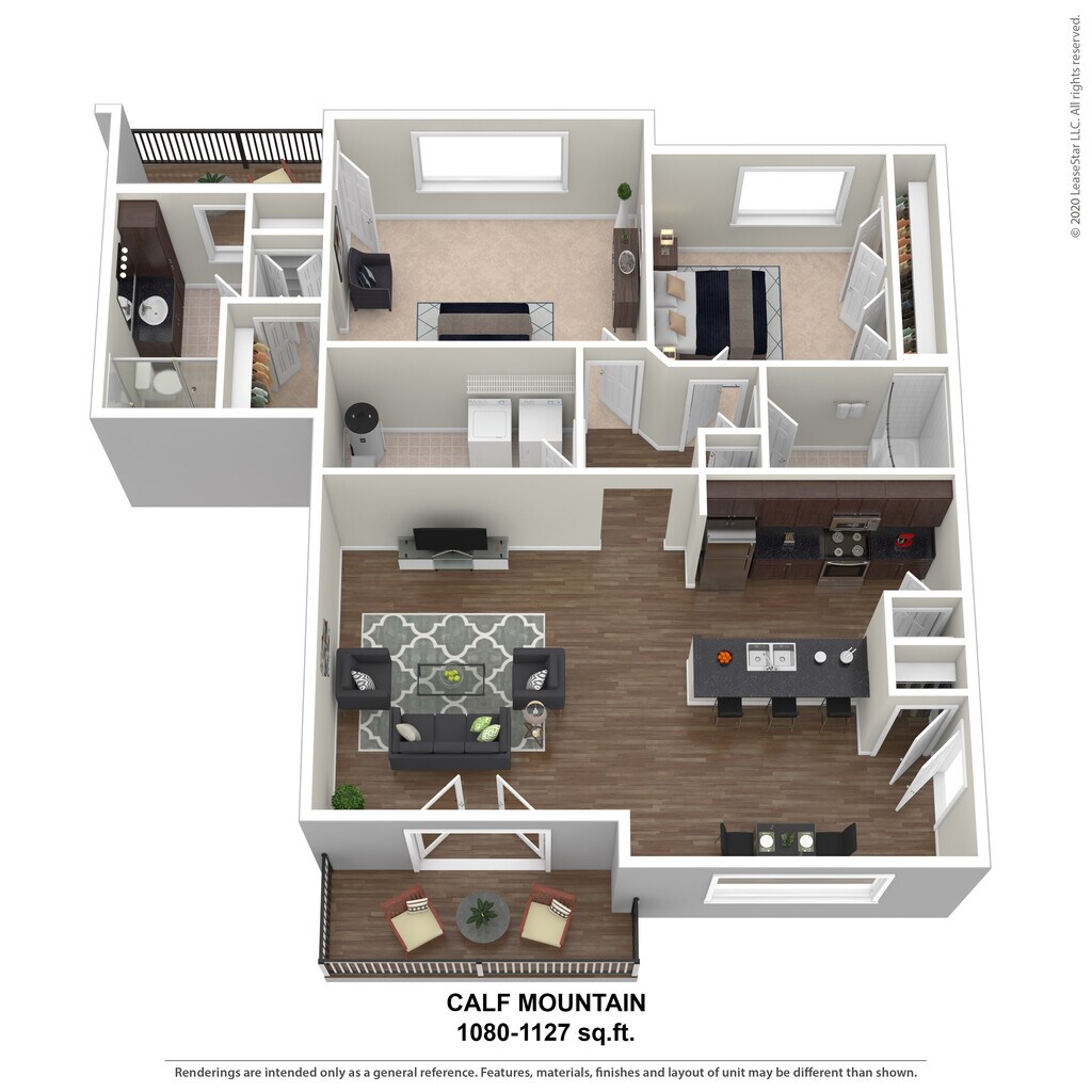 Modelo de apartamento: Calf MountainLlame para Precios2 Dormitorios, 2 Baños, 1080-1127 sq ftNo Disponible![]()