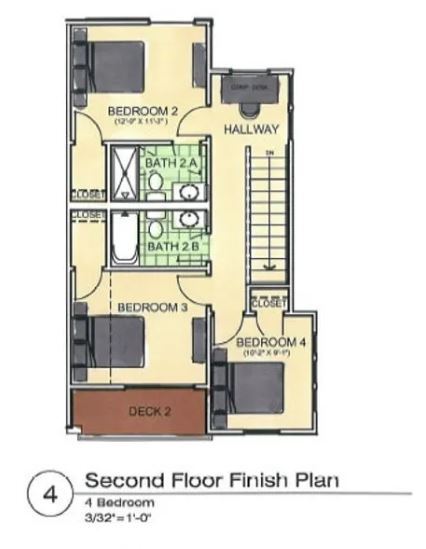 3 Bedroom Townhome - Plano 2 4 Dormitorios