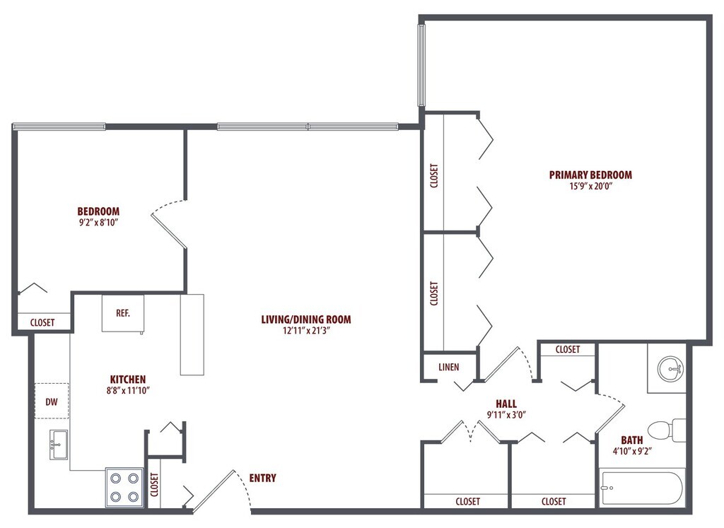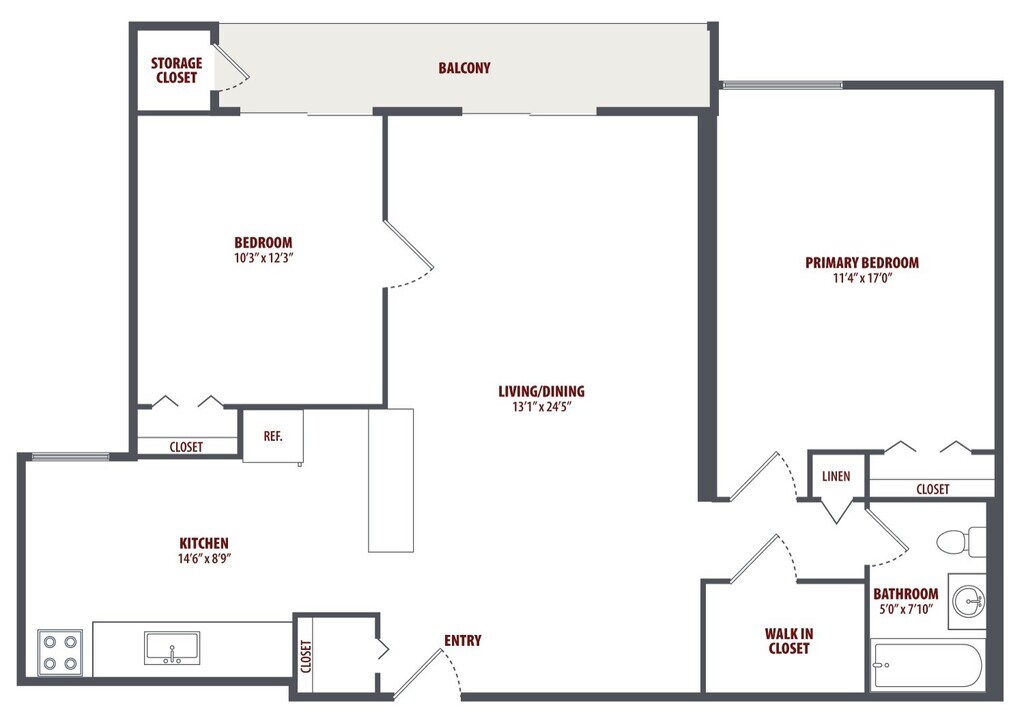 1 Dormitorio, 1 Baño, 859-899 pies²Disponible AhoraGalería del Modelo