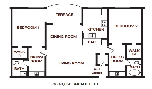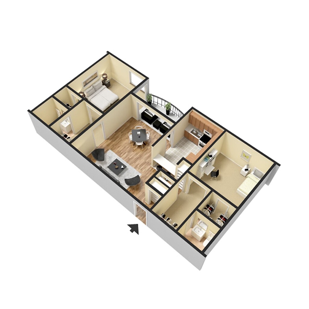 Modelo de apartamento: 2 BedroomLlame para Precios2 Dormitorios, 2 Baños, 1050 sq ftNo Disponible![]()