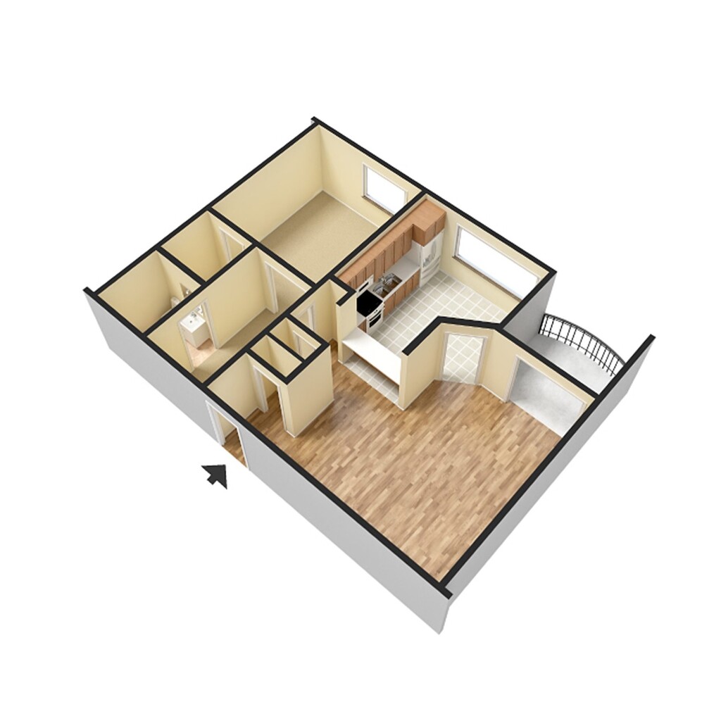1 Dormitorio, 1 Baño, 670 pies²Disponible AhoraGalería del Modelo