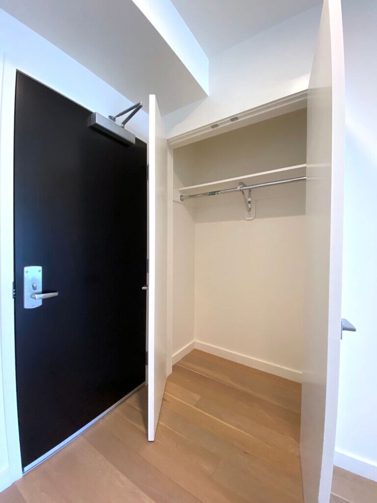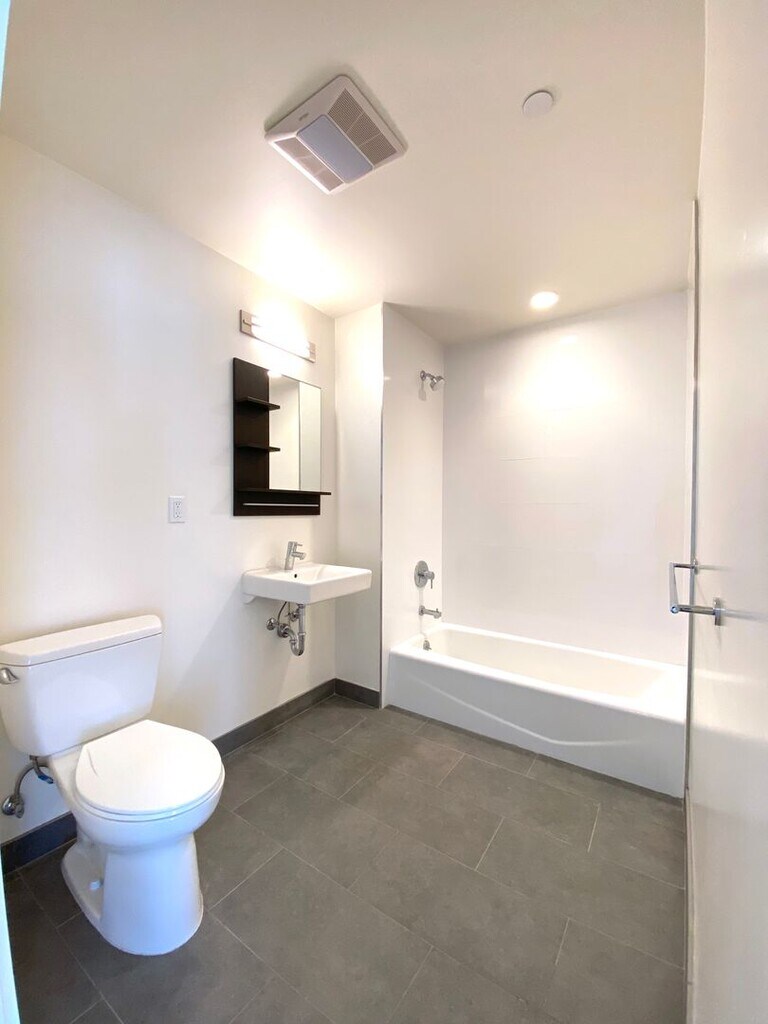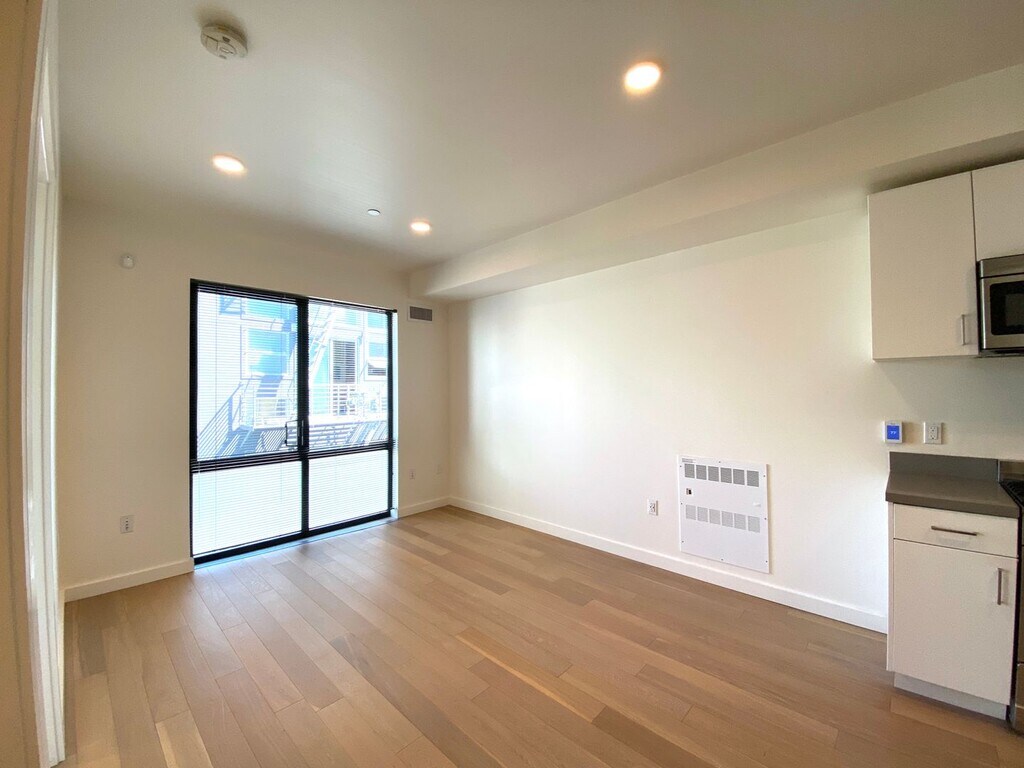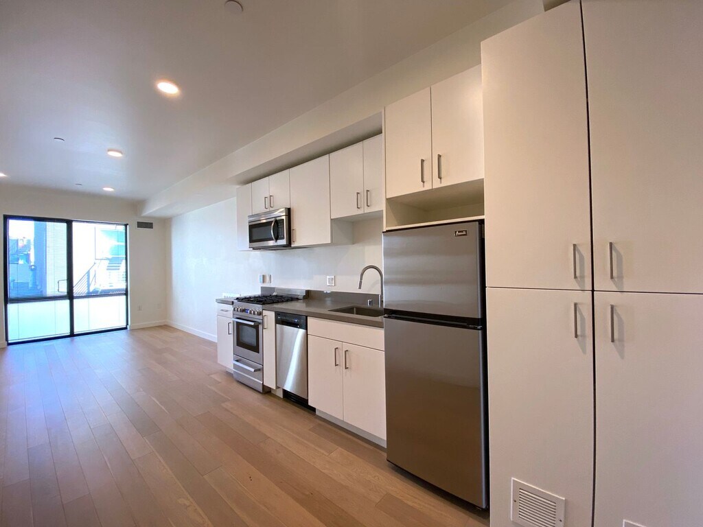Modern kitchen with ample cabinet space, stainless steel appliances (with dishwasher & microwave), stone counter tops and under-mount stainless steel sink. Main living room with a functional floor plan. Space for your breakfast table or desk and apartment sized living room furnishings. The bedroom will accommodate your queen size bed, side table, dresser and offers good closet space. The bathroom features modern fixtures, tasteful tile work and a shower/tub combo In-unit laundry! Building Amenities: New Construction Roof top gym BBQ Outdoor patio seating Fire pit Indoor Bike Parking Package Storage Webpass Internet Available (free in all common areas) Stockwell “Smart store” offering lite snacks and some household necessities The Neighborhood 915 Minna Street is situated in a super convenient location. Public transportation, grocery stores and entertainment are within steps from your front door! SOMA, Hayes Valley and the Mission are all within a few blocks away. There are too many benefits to this location list! Come see for yourself! ~5 minutes to tons of food and entertainment on 11th Street and Folsom (Bergerac, BuzzWorks Sports Bar, Basil Canteen & MORE) ~4 minutes to the new Equinox Gym and Blue Botttle Coffee ~5 minutes to the Muni train station at Van Ness and Market ~9 minute to the new Whole Foods on Market St ~4 minutes drive to Rainbow Grocery ~14 minutes to Civic Center BART Around the corner from WeWork, Peets Coffee, Fitness SF and “The Market”! ~20 minute drive to SFO