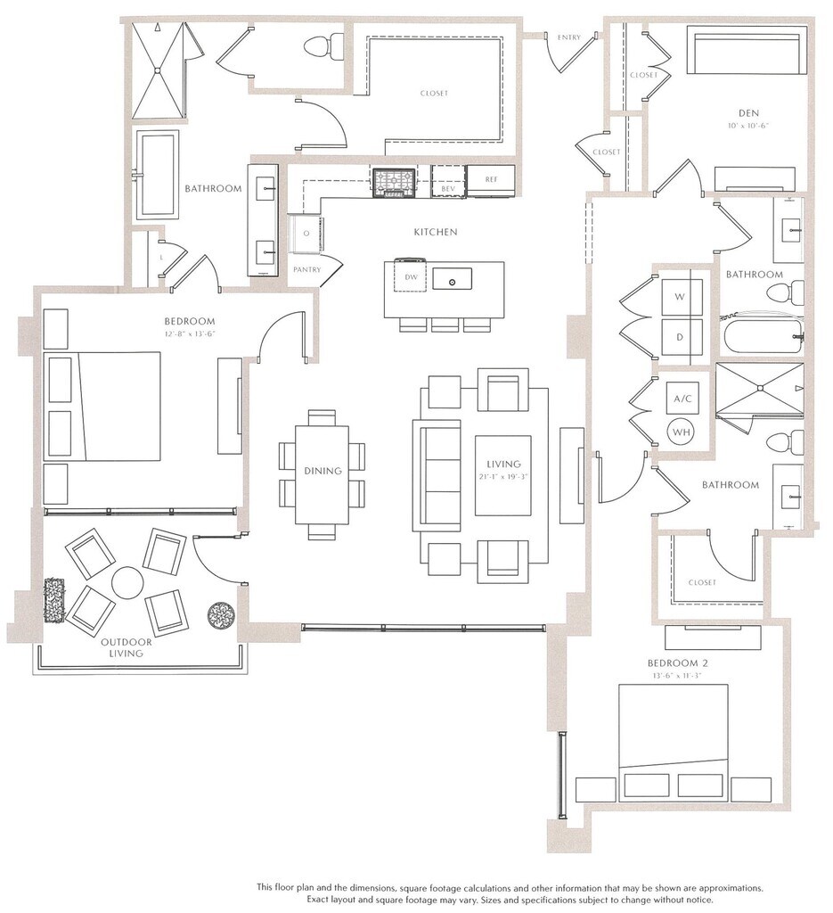 Maple II (W/Den) - Plano 1 2 Dormitorios