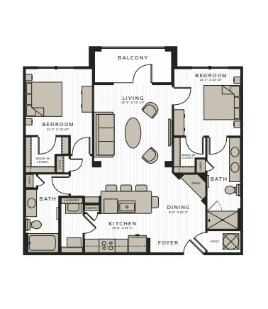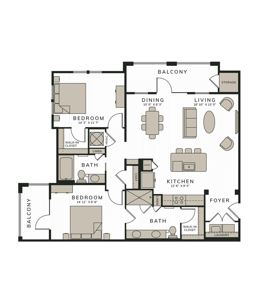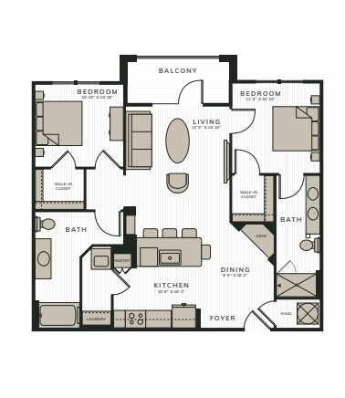 1 Dormitorio, 1 Baño, 800 pies²Disponible AhoraGalería del Modelo