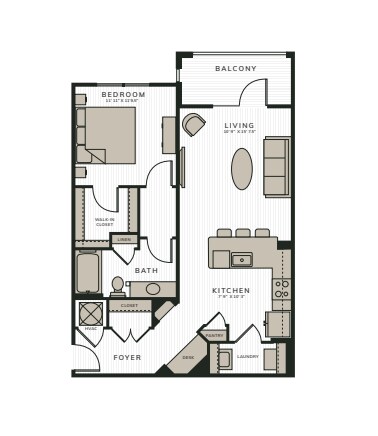 Unidad: 21084303 - Plano 1 Unidad de apartamento: 21256017Modelo de apartamento: The Flannel | Studio$1,5021 Dormitorio, 1 Baño, 812 sq ftDisponible Ahora![]()