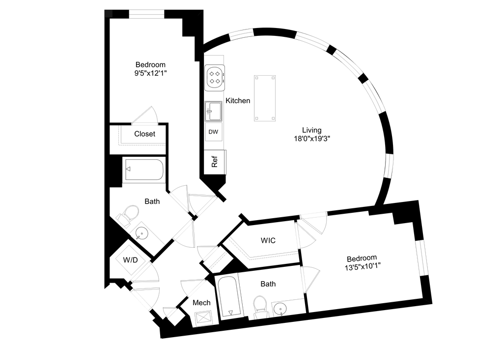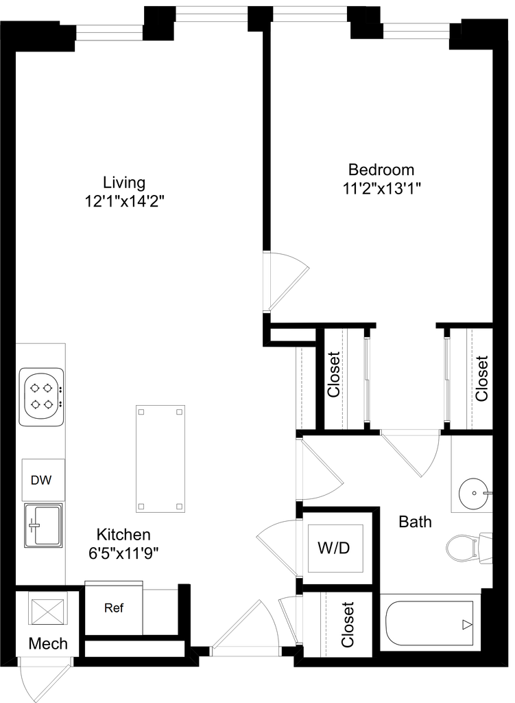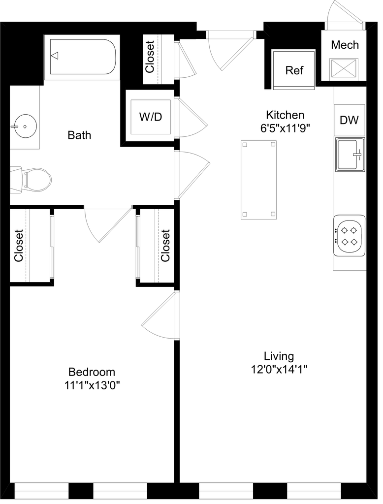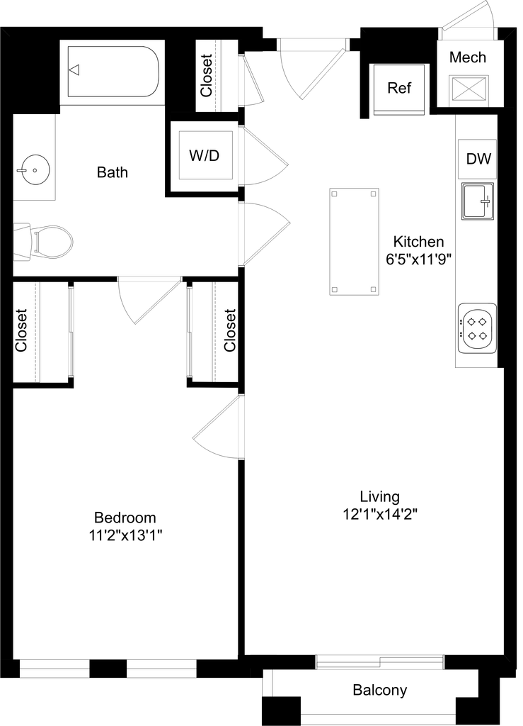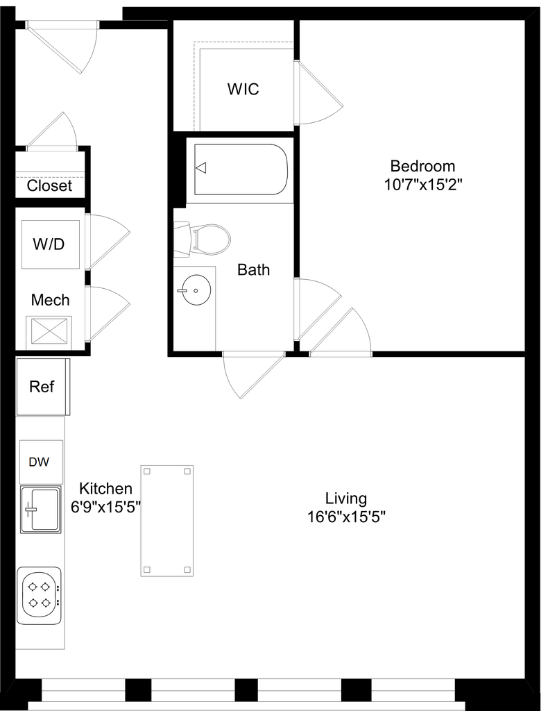 Estudio, 1 Baño, 611 pies²Disponible AhoraGalería del Modelo