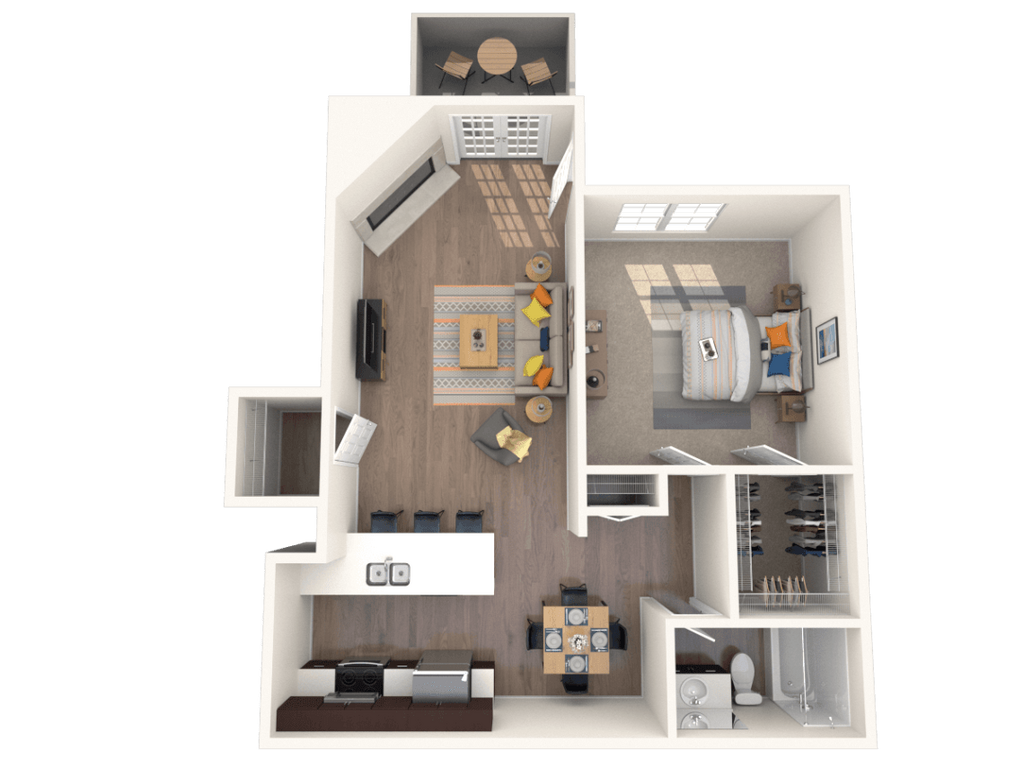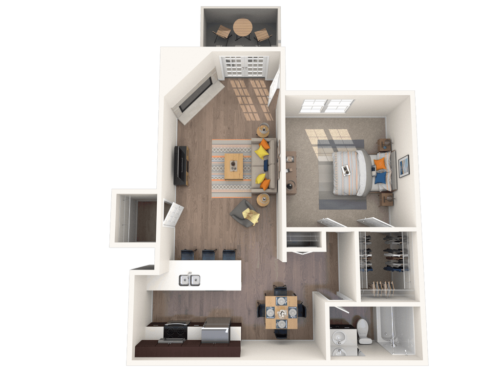 1 Dormitorio, 1 Baño, 825 pies²Disponible AhoraGalería del Modelo