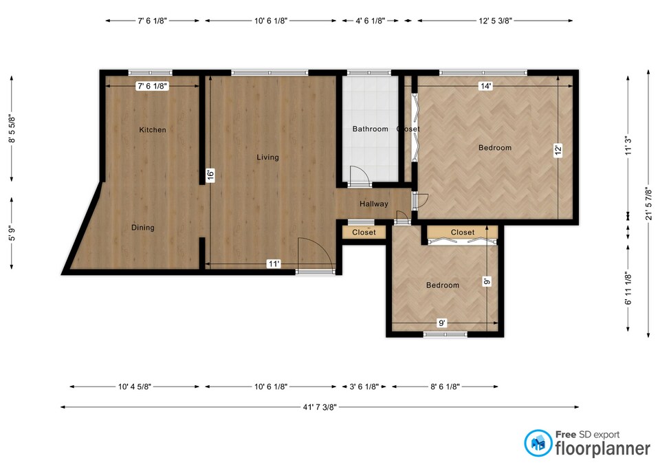 2 Dormitorios, 1 Baño, 750 pies²Galería del Modelo