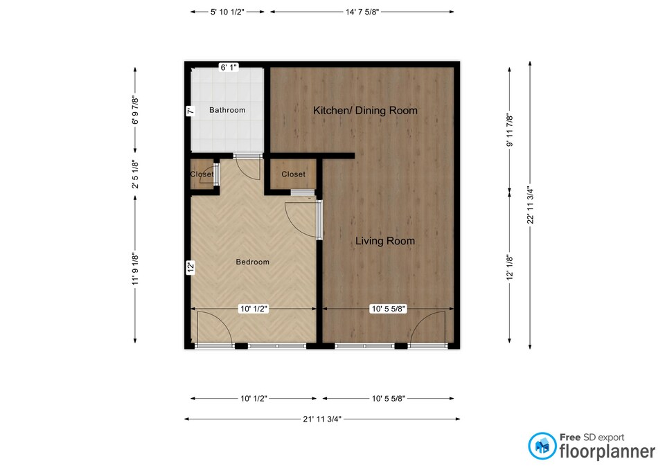 1 Dormitorio, 1 Baño, 650 pies²Galería del Modelo