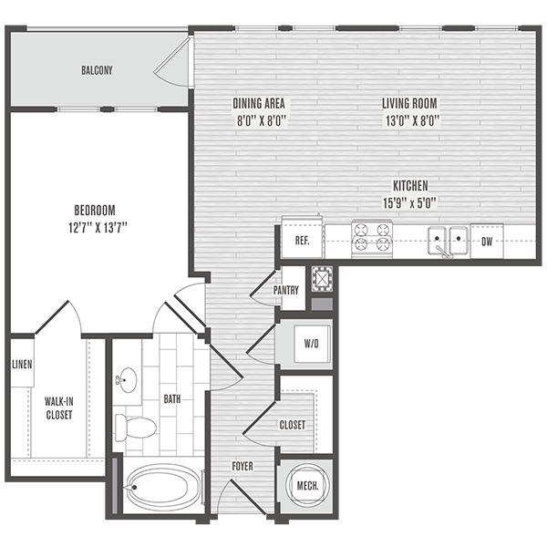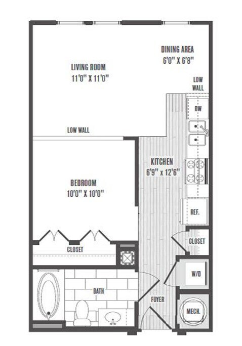 1 Dormitorio, 1 Baño, 743-802 pies²Disponible AhoraGalería del Modelo
