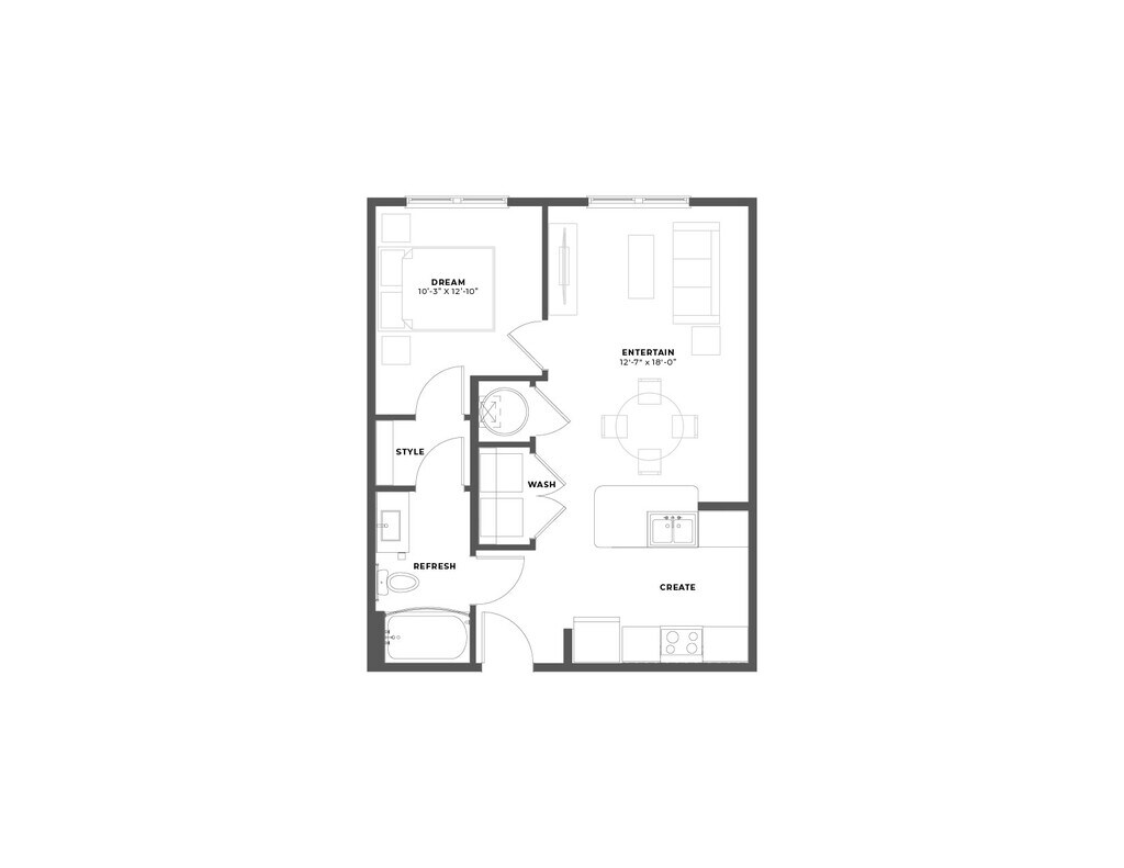 1 Dormitorio, 1 Baño, 892 pies²Disponible AhoraGalería del Modelo