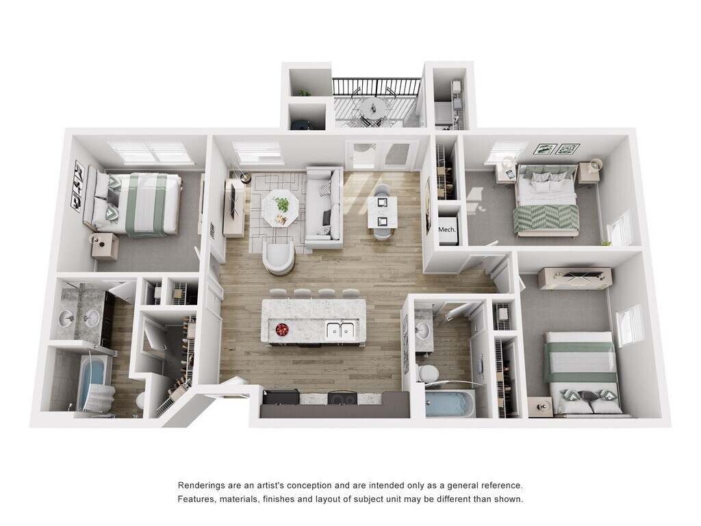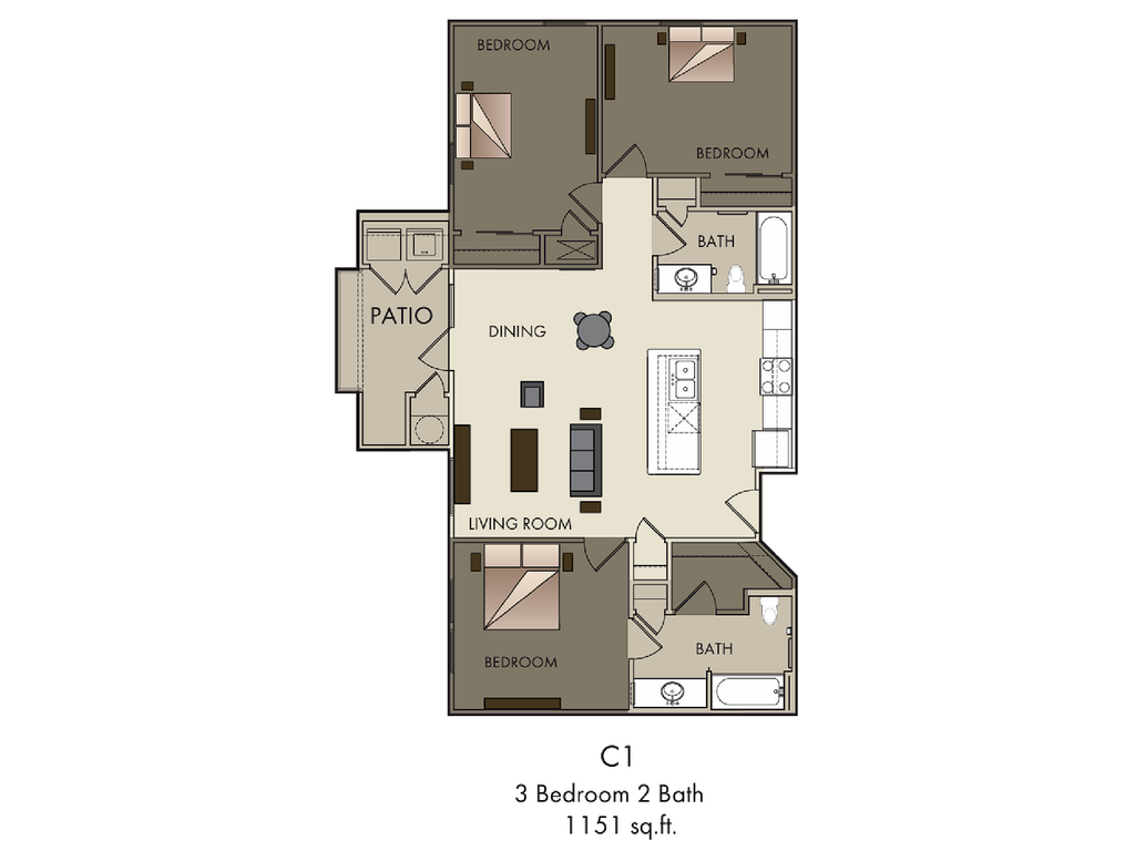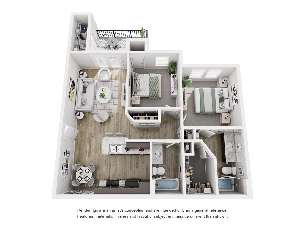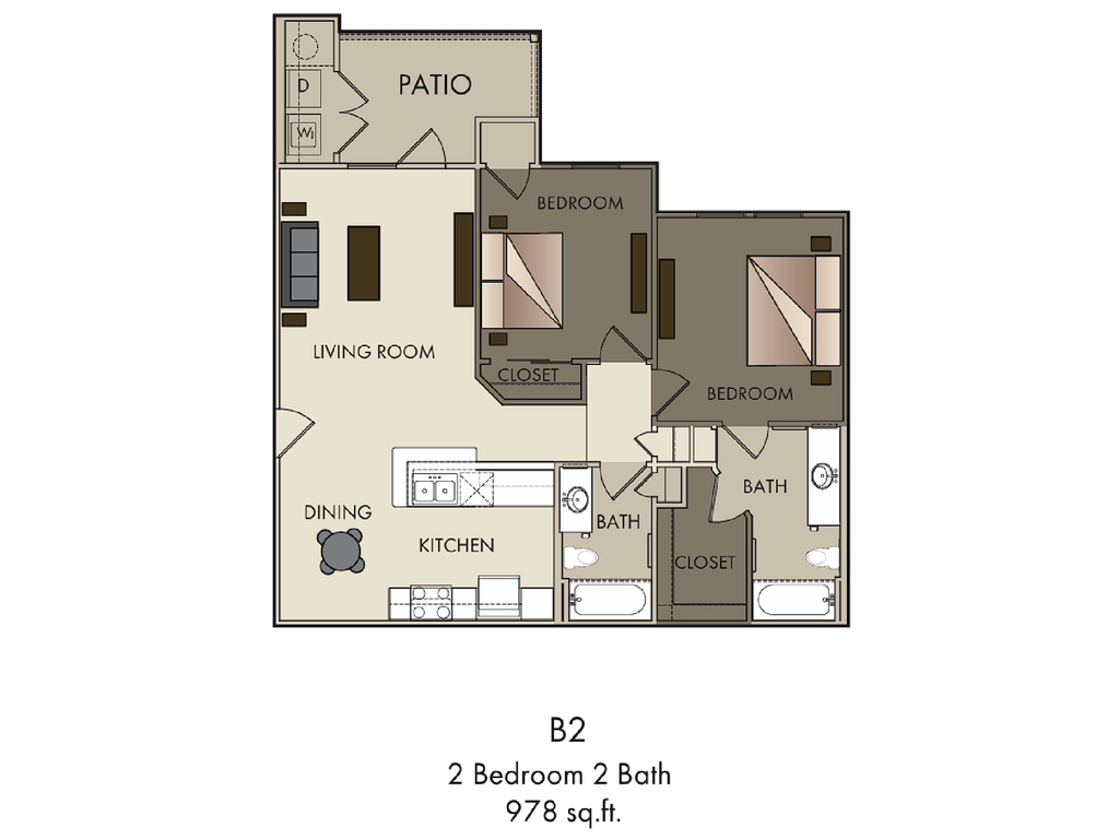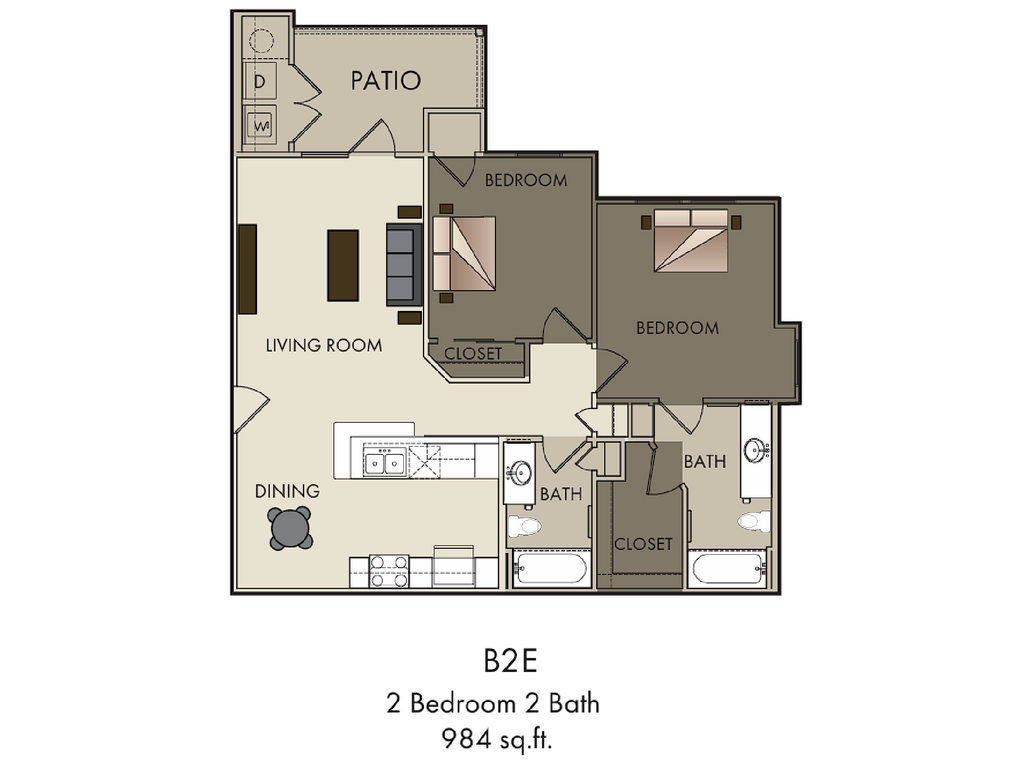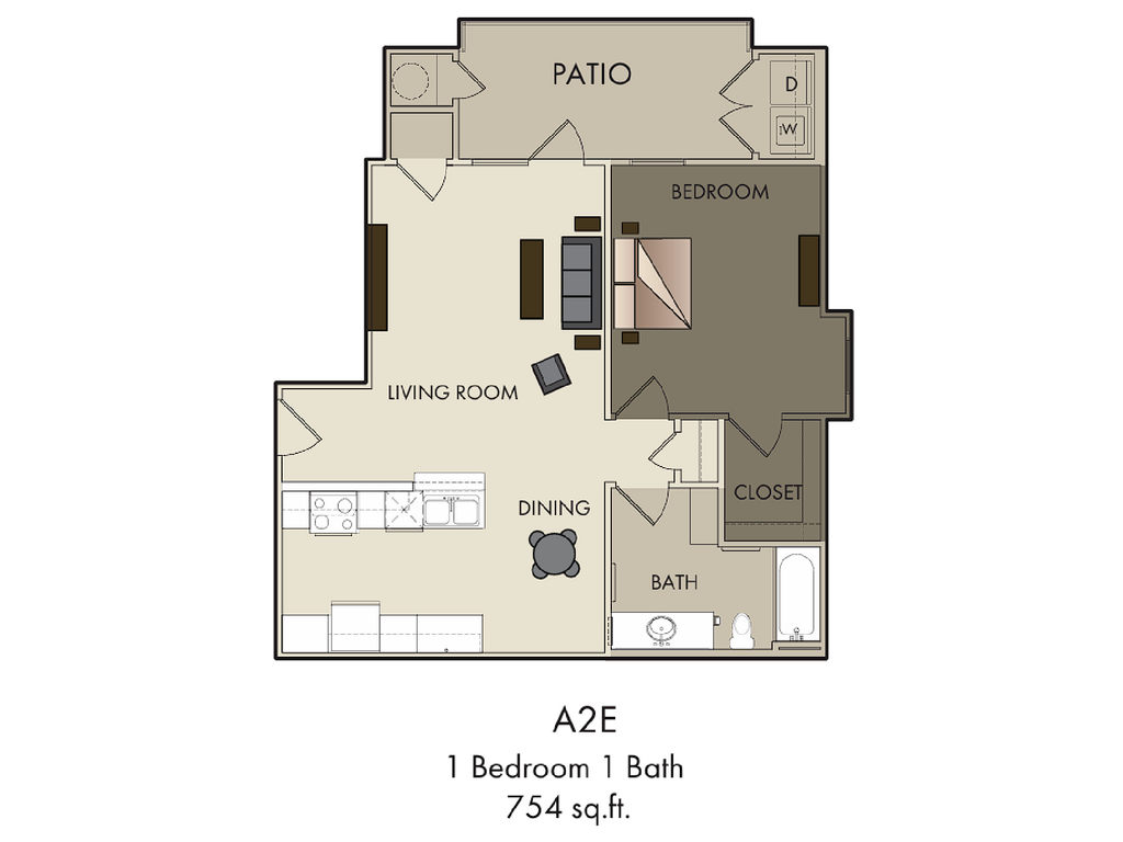 Modelo de apartamento: A2Desde $1,1731 Dormitorio, 1 Baño, 746 sq ftDisponible Ahora![]()