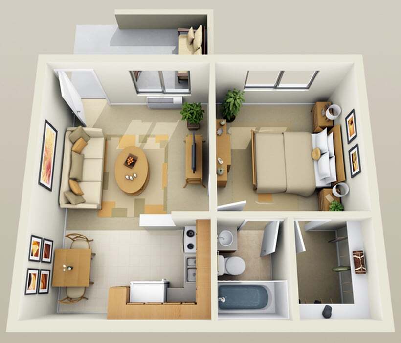 1 Dormitorio, 1 Baño, 500 pies²Disponible AhoraGalería del Modelo