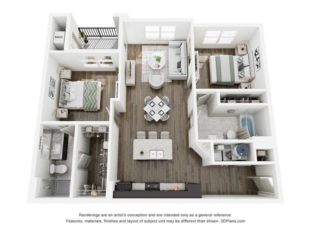 2 Dormitorios, 2 Baños, 1047 pies²Disponible AhoraGalería del Modelo