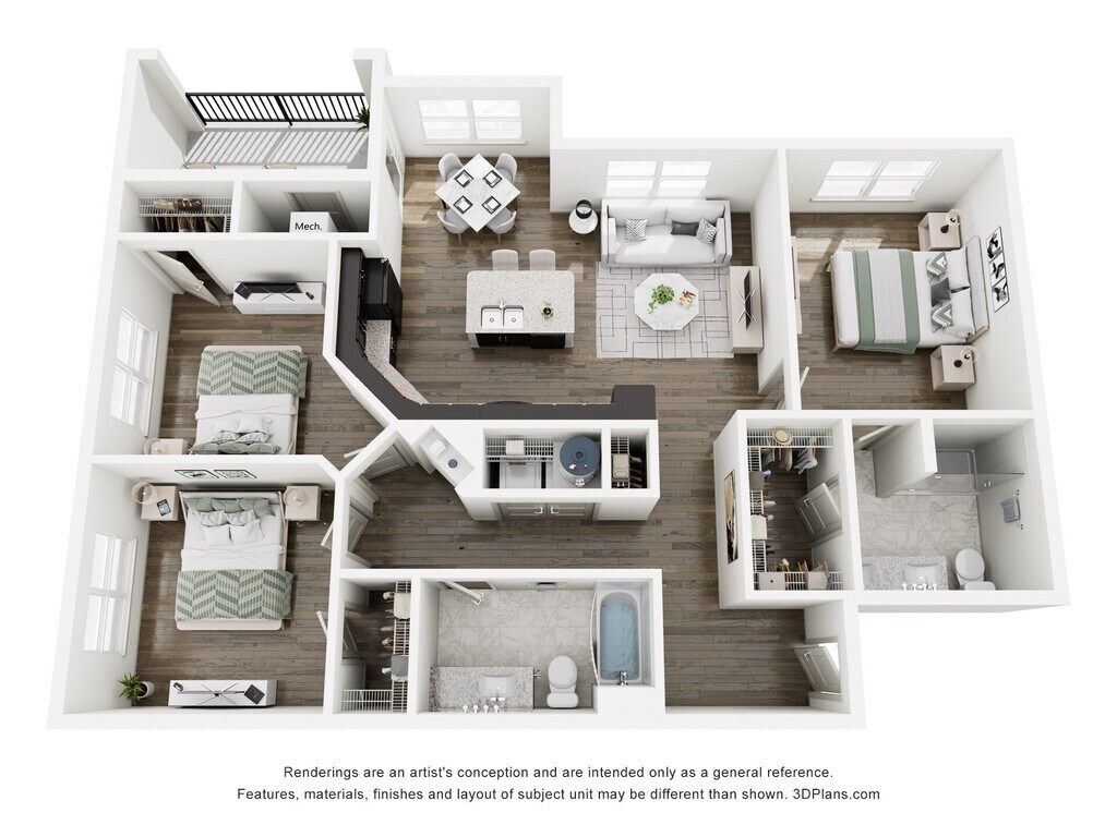 Modelo de apartamento: C1Desde $1,6423 Dormitorios, 2 Baños, 1349 sq ftDisponible Ahora![]()