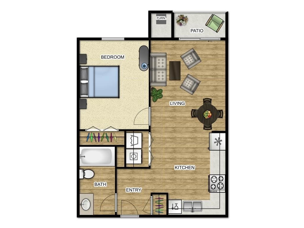 1 Dormitorio, 1 Baño, 580 pies²Galería del Modelo
