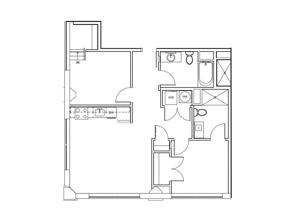 Modelo de apartamento: B2$2,1501 Dormitorio, 1 Baño, 715 sq ftNo Disponible![]()